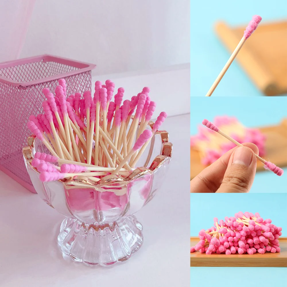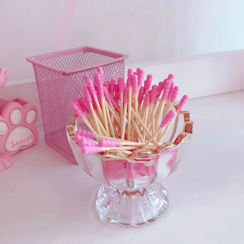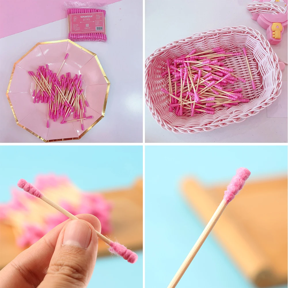 Хлопковый тампон для девочек, милый одноразовый макияж, розовый женский макияж, хлопковые медицинские двойные деревянные палочки