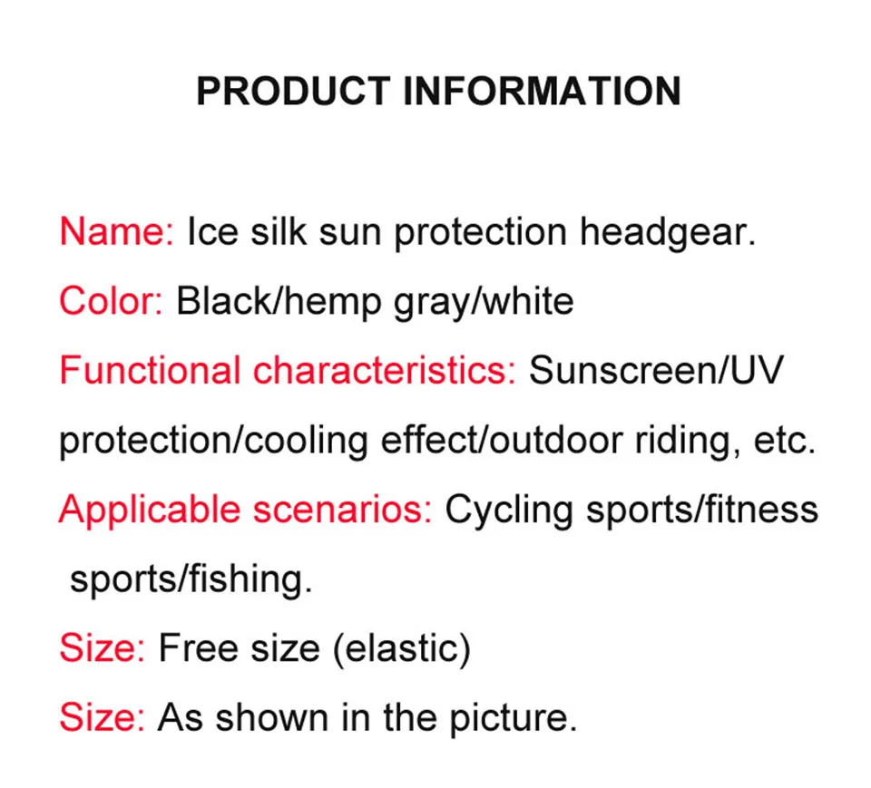 Характеристики:Наименование: полотенце для лица из ледяного шелкаЦвет: черный/белый/пеньковый серый/темно-серыйРазмер: свободный размерЦвет: как на картинкеПосылка включает в себя:1 * Велосипедное ледяное шелковое полотенце для лица