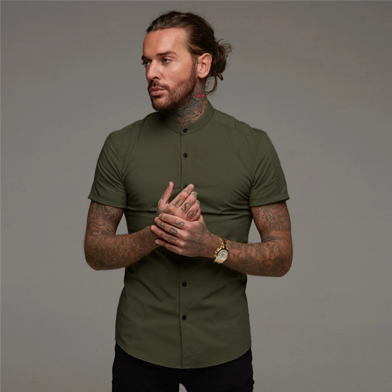 Мужская рубашка с коротким рукавом, летняя, простая, приталенная, для фитнеса, спортзала