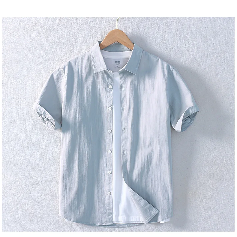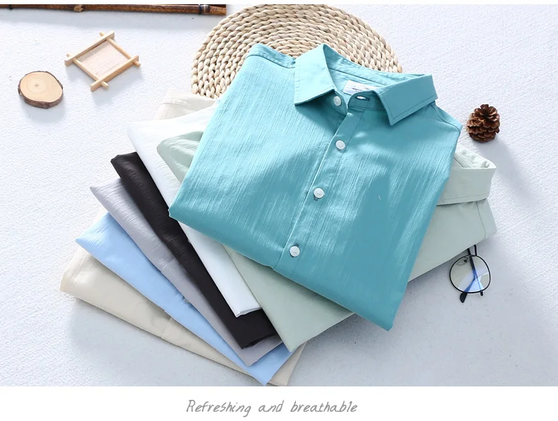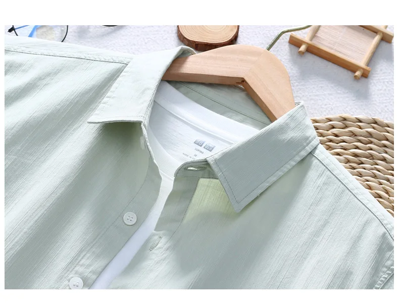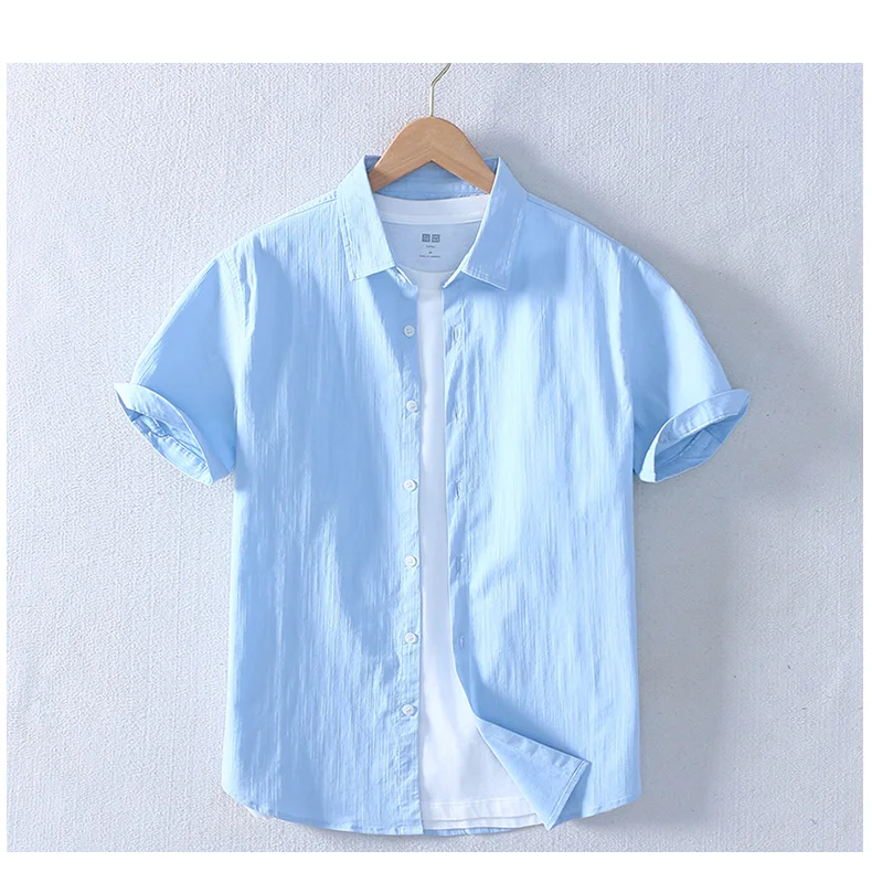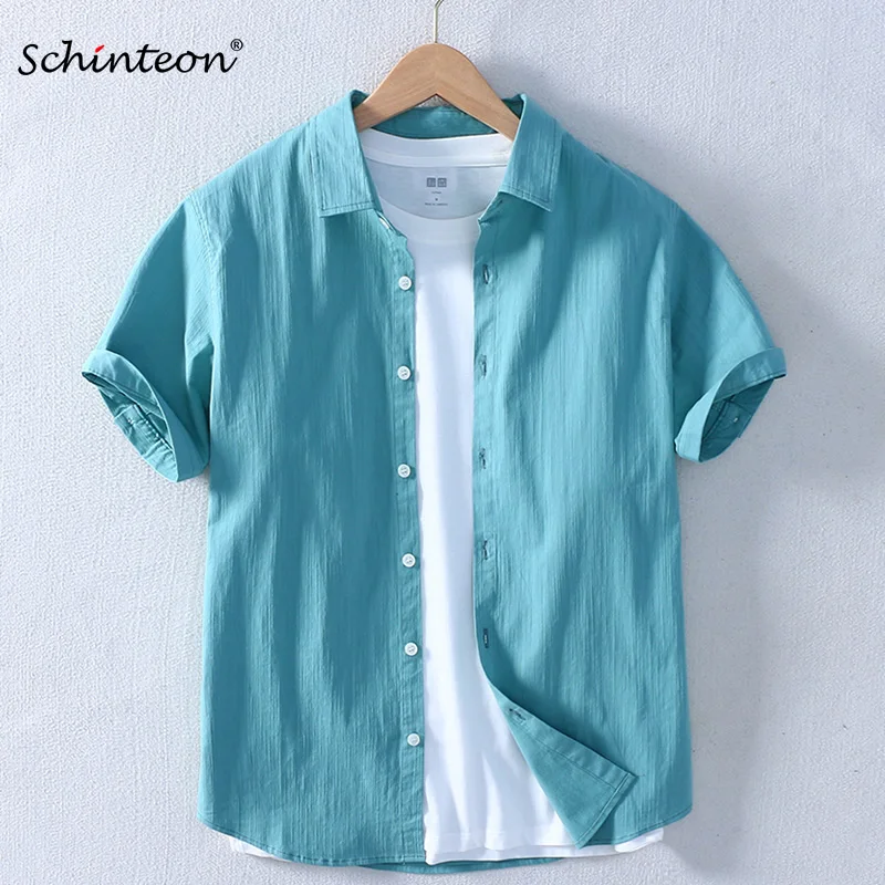 Рубашка Schinteon мужская с короткими рукавами, Тонкая Повседневная Удобная Однотонная рубашка из чистого хлопка, с отложным воротником, лето 2021