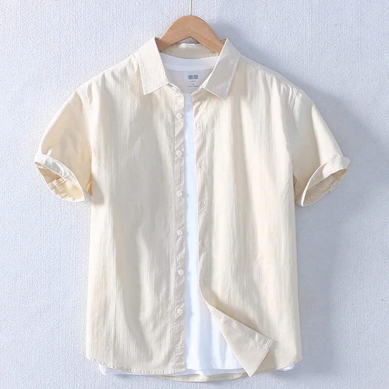 Schinteon мужская летняя рубашка с короткими рукавами, 100% чистый ...