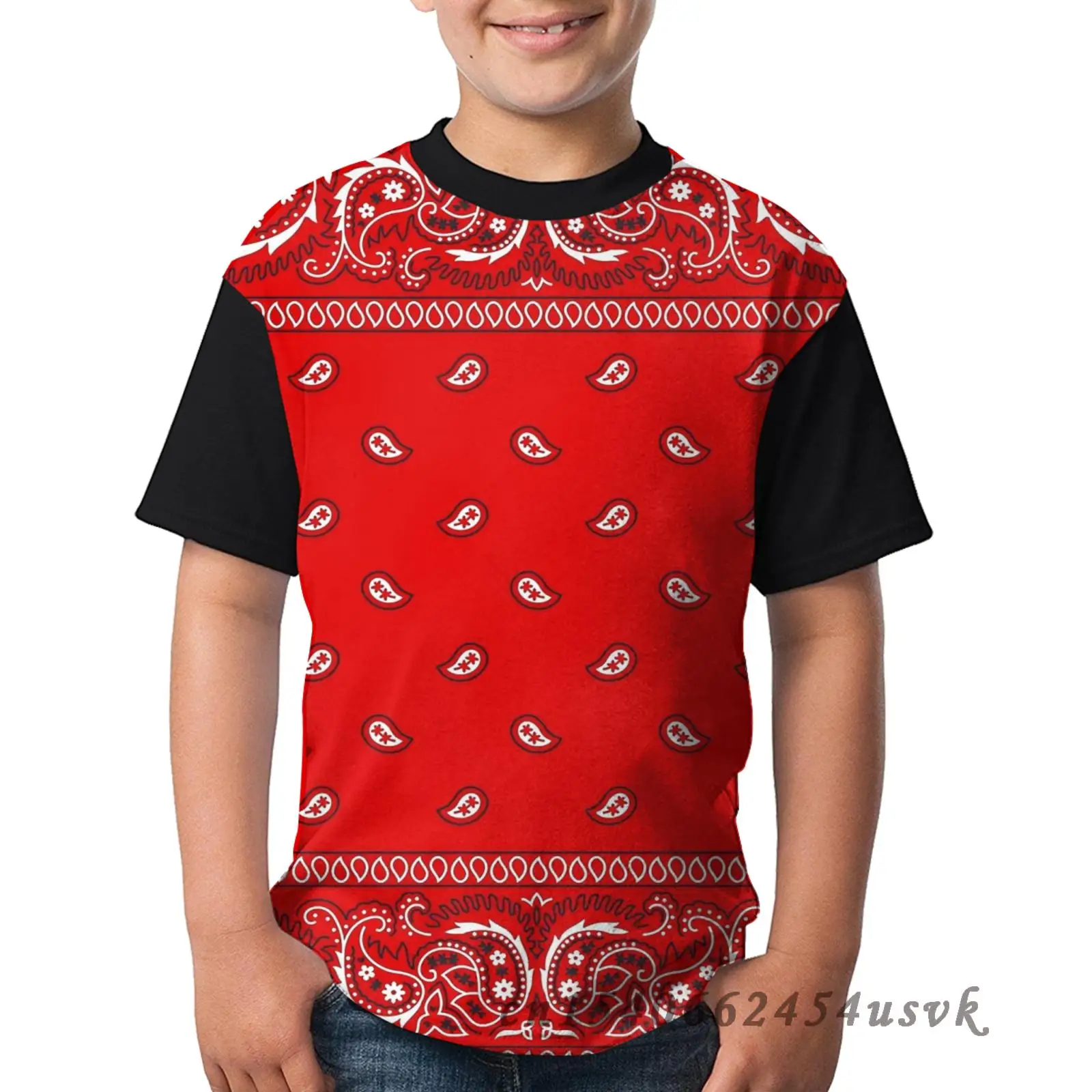 Забавная семейная одежда, бандана-красная Мужская футболка с принтом, женская футболка, детские топы с коротким рукавом, футболка
