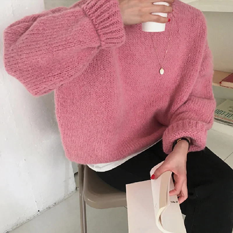 Розовый женский свитер пуловер Женский вязаный Overszie свитера с длинными рукавами для девочек свободные элегантный вязаный плотная верхняя одежда размера плюс