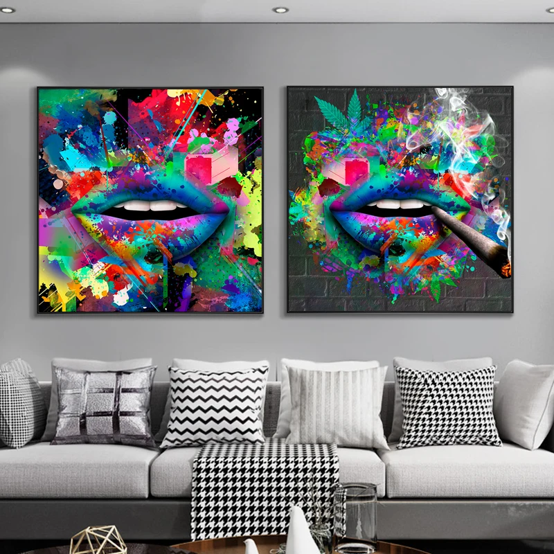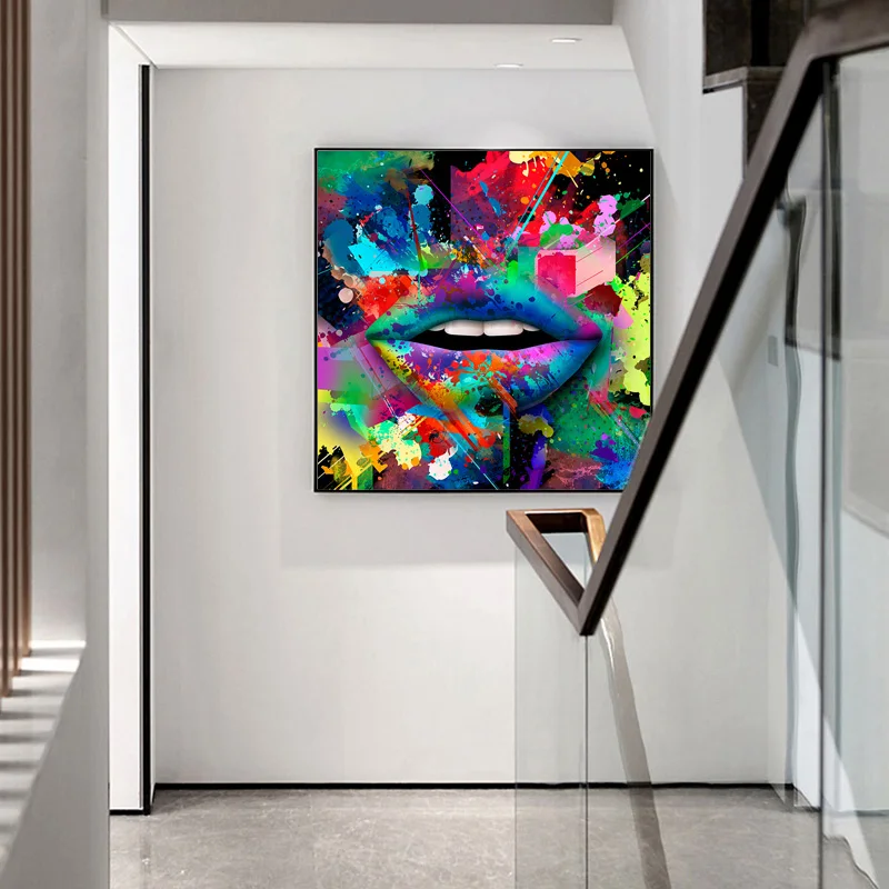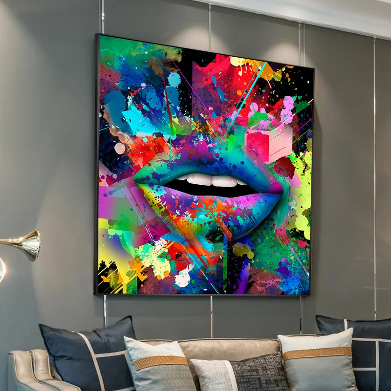 Граффити Бэнкси, живопись на холсте, красочные губы, уличные настенные картины, абстрактные постеры и принты для гостиной, домашний декор