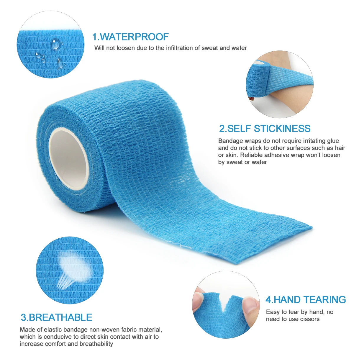 Этот бандаж-это не клейкая лента, которая прилипает к себе, нет необходимости в штифтах или других лентах, чтобы держать его вместе. Идеально подходит для сжатия поврежденных мышц, так как не прилипает к коже или волосам.
