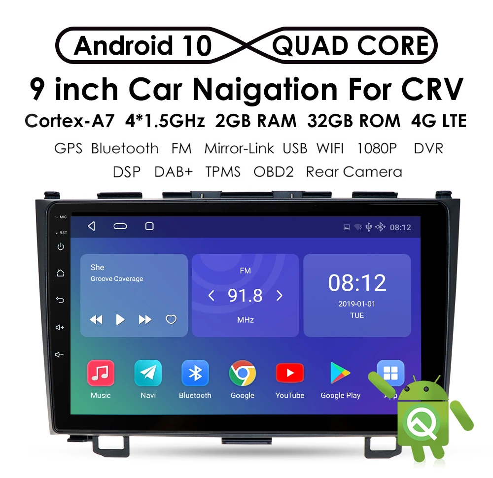 Автомагнитола на Android 10, мультимедийный плеер 2Din, автонавигация для Honda CRV CR-V 2006-2011, стерео, Wi-Fi, Navi DSP, GPS, RDS, SWC, 4G, LTE