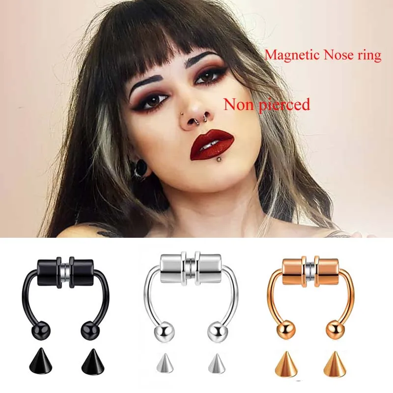 Поддельный пирсинг для перегородки носа, магнитное кольцо для носа,...