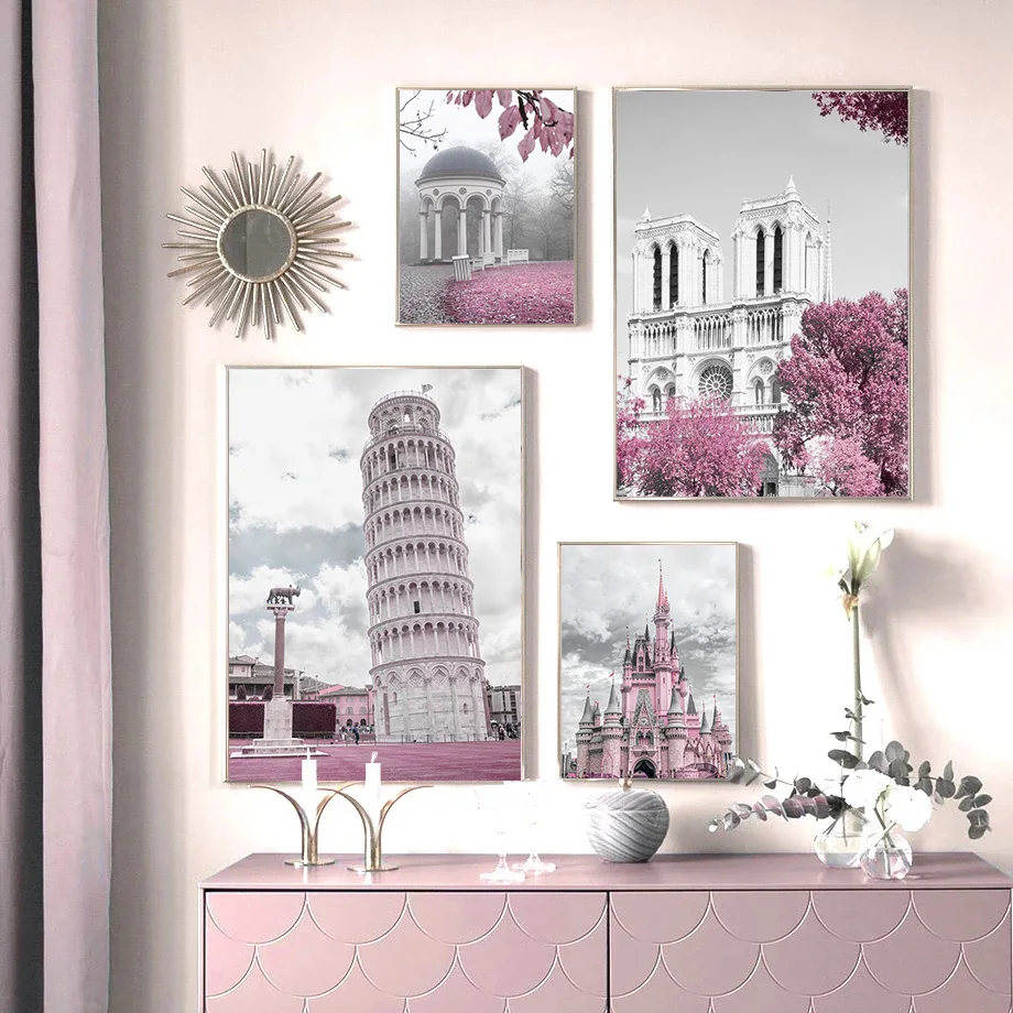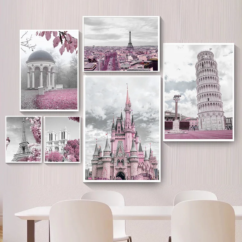 Настенный постер с изображением розового Парижа, цветов, французско...
