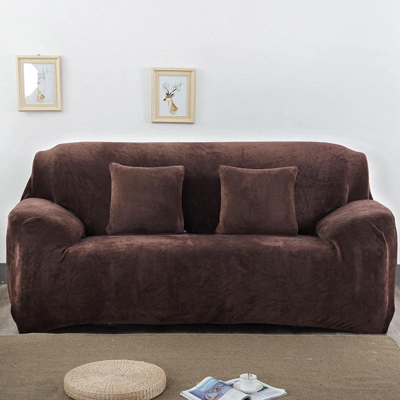 Чехол для дивана бархатный плюшевый L-образный эластичный для гостиной
