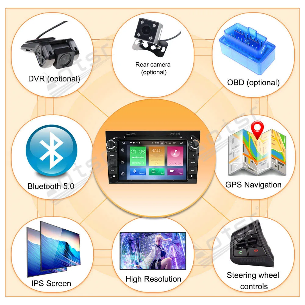 1». Поддержка функции DVR: Поддержка DVR спереди, это позволит вашему путешествию больше безопасности.2». Поддержка модуля 4G3». Поддержка внешнего приемника DAB (работает с помощью Toush Screen)4».OBD Поддержка OBD II, автомобильный диагностический инструмент, вы можете знать свое состояние автомобиля в любом месте. Можете купить OBD ключ от нас5». Поддержка ТВ: может поддерживать DVB-T2/ISDB-T, с нашим DVB-T2/ISDB-T коробкой и разъемом, вы можете работать на нашем автомобильном dvd-экране6». Поддерживает камеру заднего вида, когда вы задним ходом автомобиля он будет работать автоматически, он может отображать трек реверсивного.