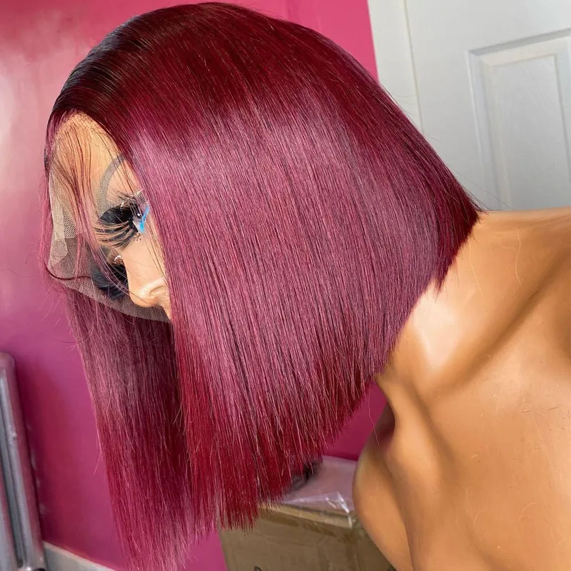 Винно-Красные кружевные Передние синтетические волосы парики короткий боб парик прямой средней части бордовый парик с вырезами фальшивой для женщин парик для косплея