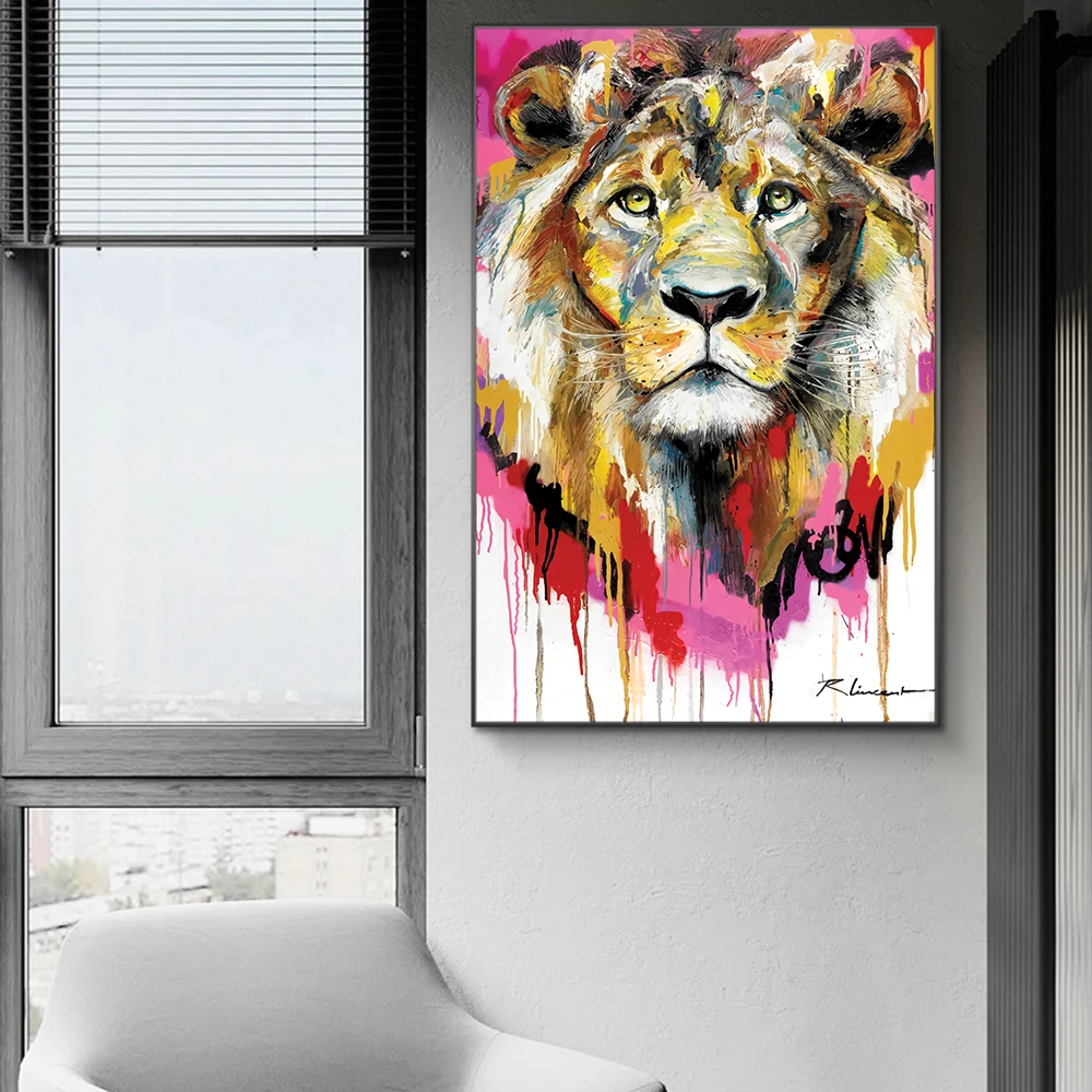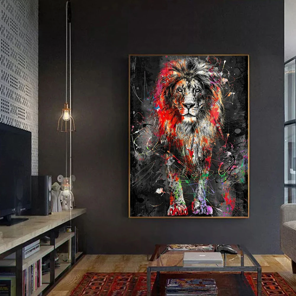 Красочный Лев граффити холст живопись абстрактные Животные стены картины декоративные картины для дома дизайн