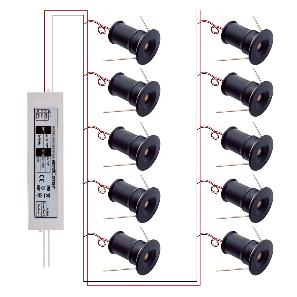 1 Вт IP65 Мини Светодиодный точечный светильник с трансформатором от окружающего Точечный светильник 12V маленький Точечный светильник Лестницы потолочный светильник Кабинета шкафа светильник
