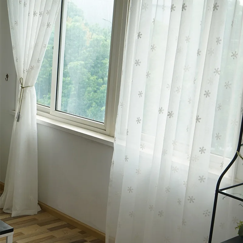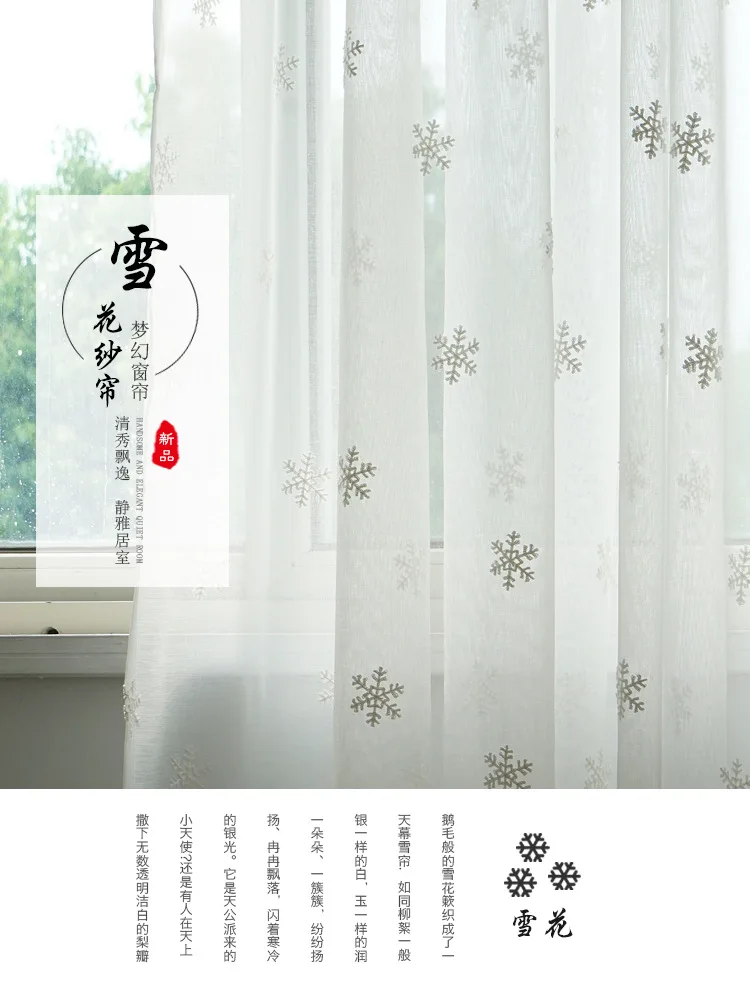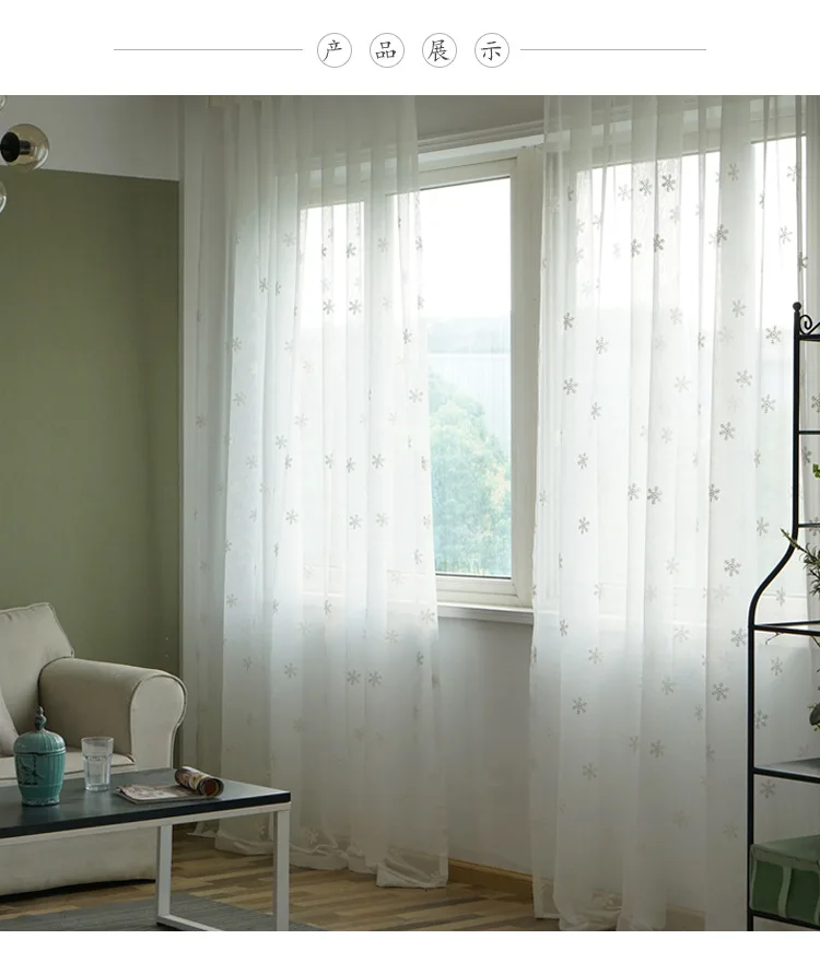 Тюлевая занавеска белого цвета с вышивкой в виде снежинок для гостиной, Современная прозрачная занавеска для окна спальни, размер на заказ