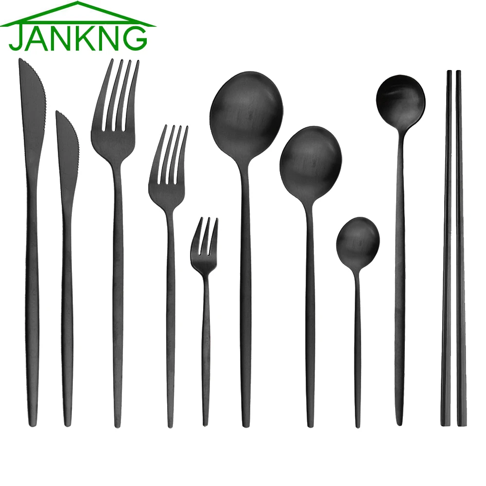 JANKNG набор черных матовых столовых приборов из нержавеющей стали ...