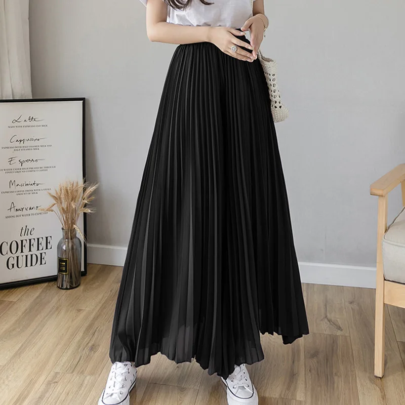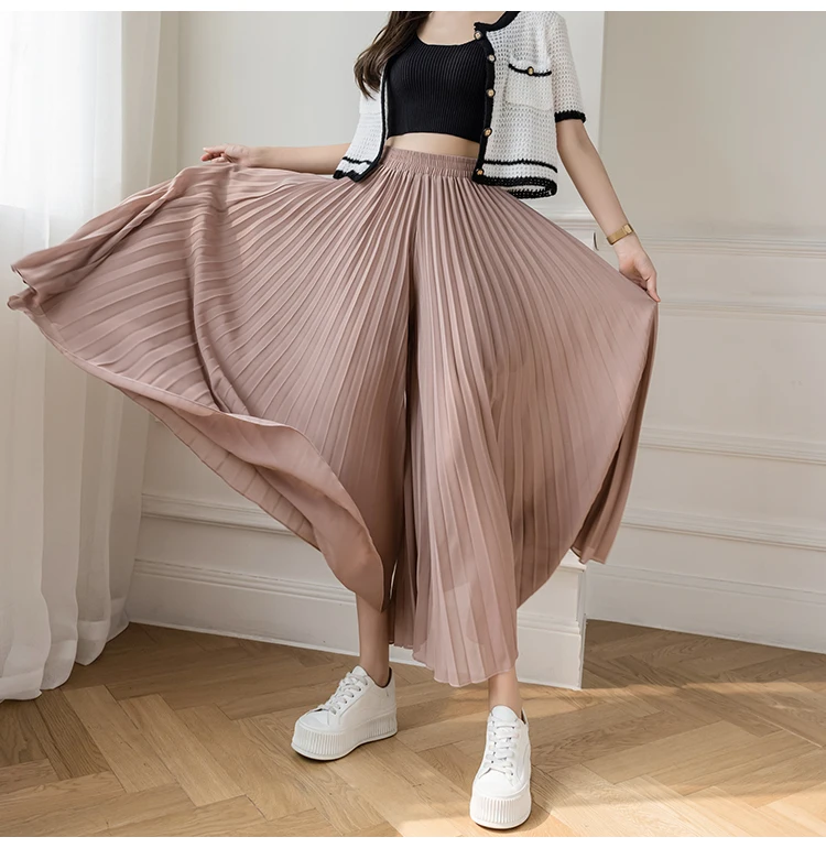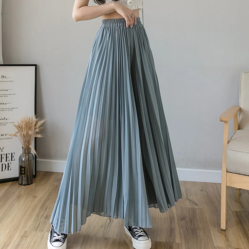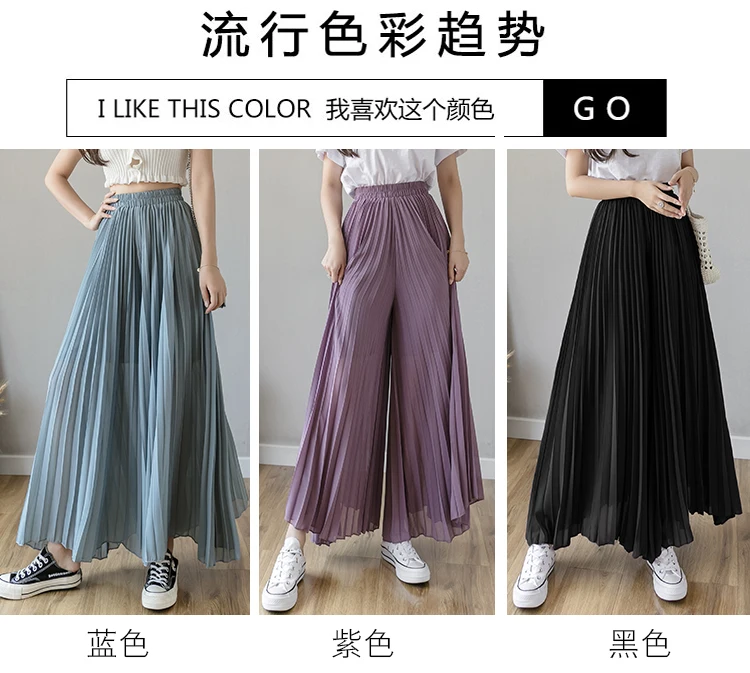 Модные свободные летние шифоновые брюки в Корейском стиле с широкими штанинами, женские брюки-кюлоты, костюмы с высокой талией, повседневные плиссированные брюки для женщин 2021
