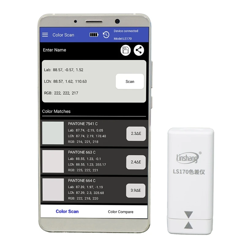 LS170 мобильный телефон приложение портативный цветной imeter цветной анализатор Цифровой точный лабораторный цветной Измеритель Тестер 8 ммOOTDTYОсобенности:à Цвет разница contrast · QC detectionã: обнаружить Цвет разница между образца Цвет и стандартный Цвет, после того, как установка Цвет разница â³E порога (0,1-50 опционально) приложение может автоматически определить, является ли разница в цвете квалифицированной или нетСтандартная Цветовая добавка ãstandard Standard: с стандартной функцией сложения цвета можно извлекать из библиотеки цветовых карт, что удобно для разницы в цвете по сравнению с цветом образца, без необходимости носить тяжелые цветные картыÃformulformul6 формул разницы в цвете formul: Встроенные 6 формул разницы в цвете, чтобы обеспечить стандарты для определения разницы в цвете для различных отраслей промышленностиНесколько стандартных электронных цветовых карт ã room: комната для измерения цвета может быстро соответствовать самым близким 3 цветным номерам карт из нескольких стандартных цветовых библиотеки с точностью до 90%, И собранные цвета могут быть восстановлены через приложениеБольшое количество цветовых данных: большое количество цветовых данных можно хранить в мобильном приложении, собирать желаемый цвет в любое время, в любом месте и создавать собственную цветную картуХарактеристики:Модель: LS170Режим отображения данных: мобильное приложение + дисплейДисплей: нетРежим освещения: 45/0 (45 ° кольцевая подсветка, 0 ° прием)Размер: 31,7x31,7x70.4ммВес: 51 гИзмерительный Калибр: 8 ммУсловия измерения: светильник D65, поле зрения 10â°Передача данных: BluetoothПримечание: приложение поддерживает только устройства AndroidПосылка включает в себя: (с розничной посылка d)Цифровой колориметр LS171-1 шт.