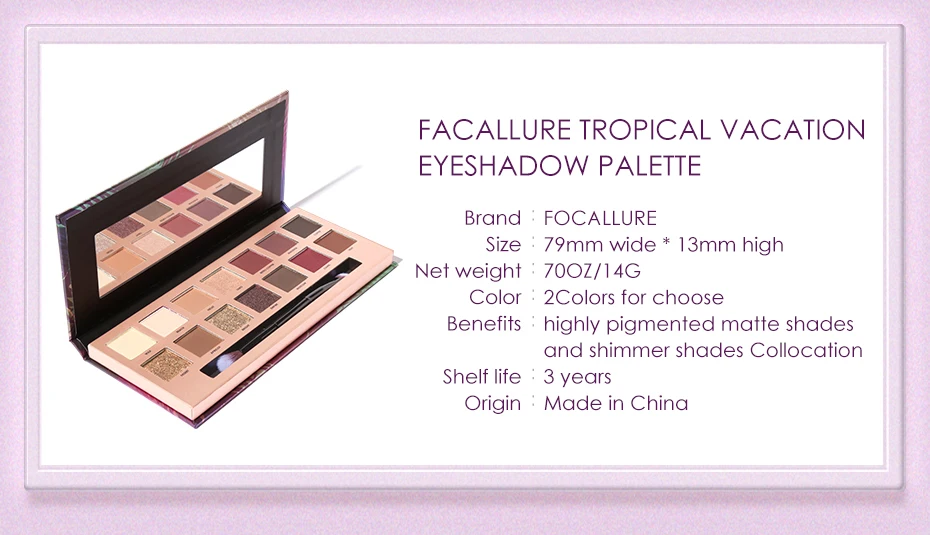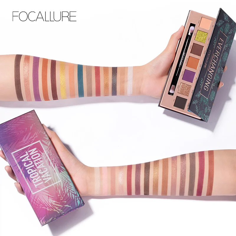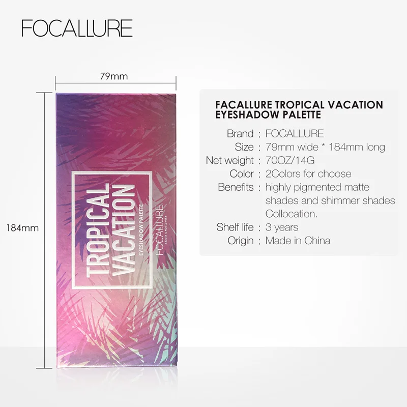 Палетка блестящих теней для век FOCALLURE, 14 цветов, профессиональная палитра, легкие в использовании долговечные тени для век в тропическом отпуске