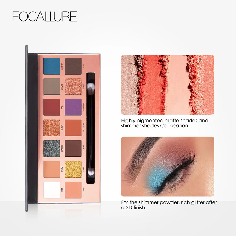 FOCALLURE ультра палитра теней для век 14 цветов матовые блестящие тени для глаз Косметика равномерно распределяется ГОРЯЧИЙ Макияж Тени Палитра