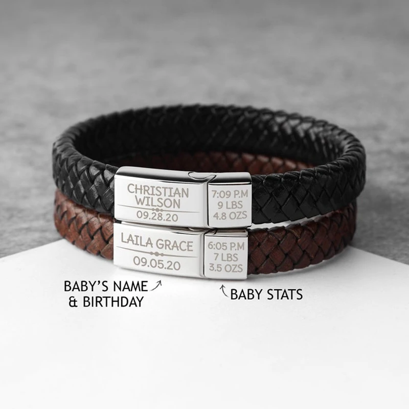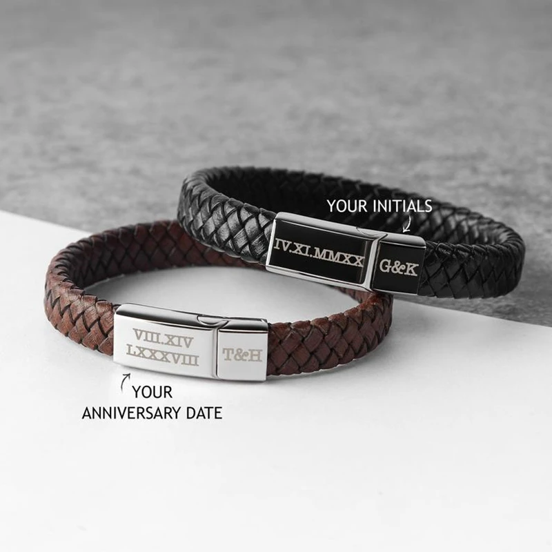 Браслет из натуральной кожи для мужчин и женщин, черный Индивидуальный браслет с гравировкой и магнитной застежкой из нержавеющей стали, Подарочная бижутерия на заказ