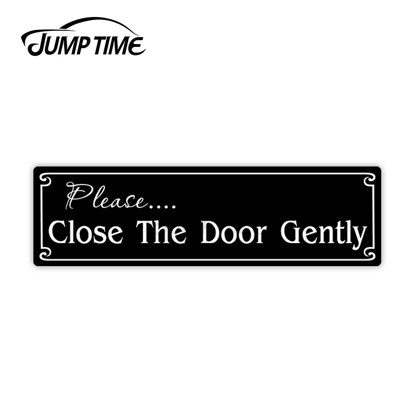 Время прыжка 13 см x 4 см Автомобильная наклейка пожалуйста, закройте дверь аккуратно автомобильный Декор личность здание Водонепроницаемый Виниловый автомобильный Декор