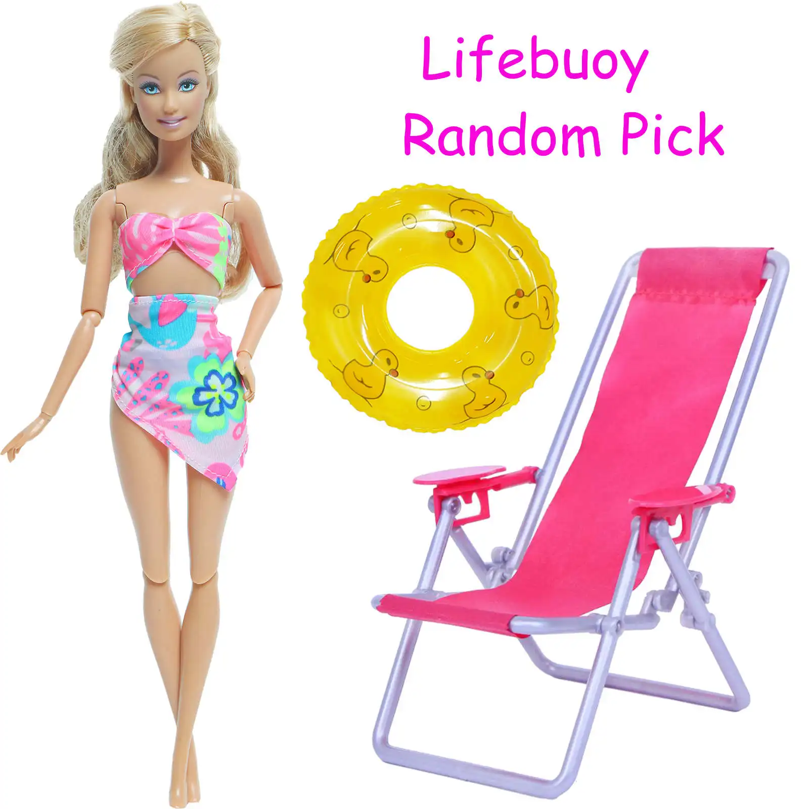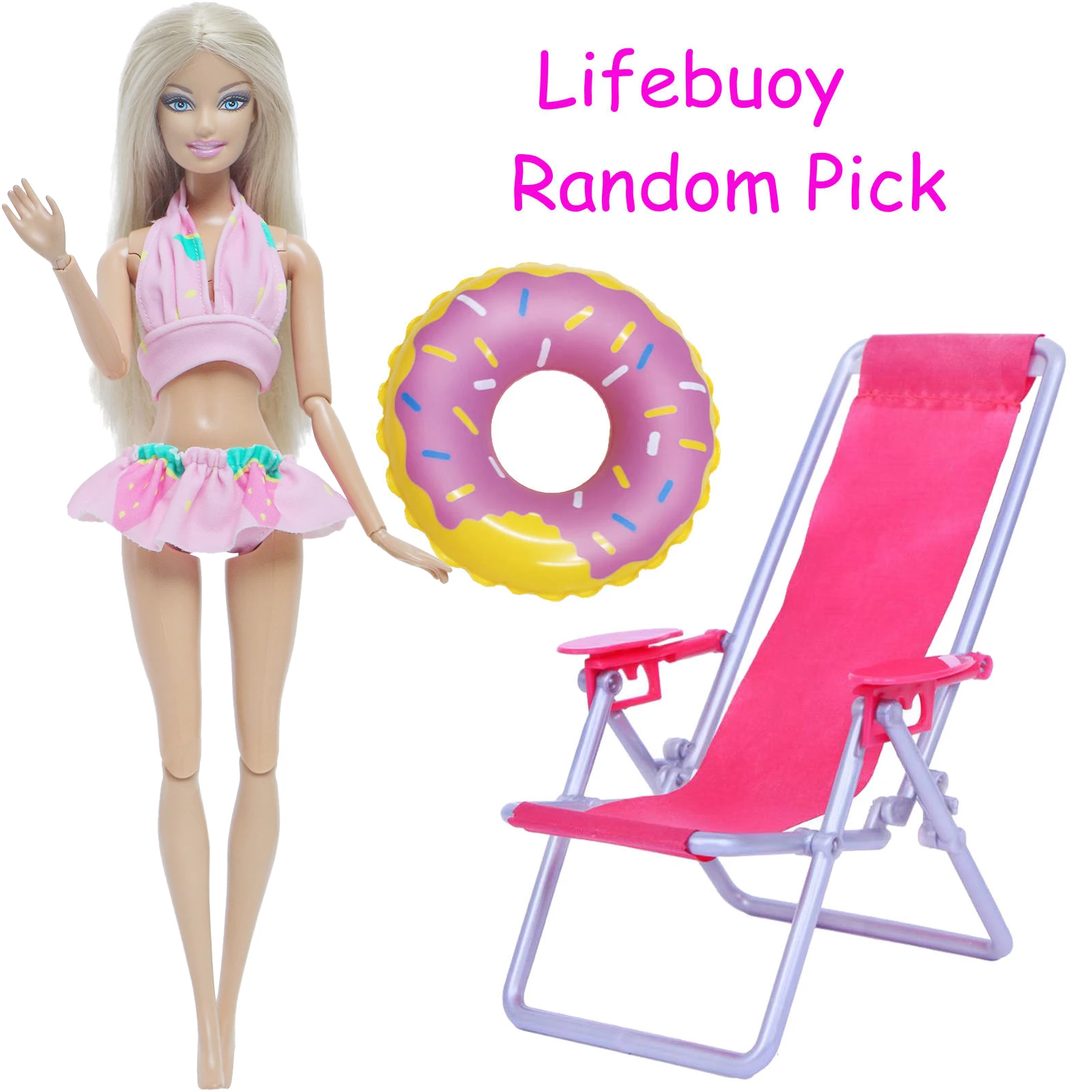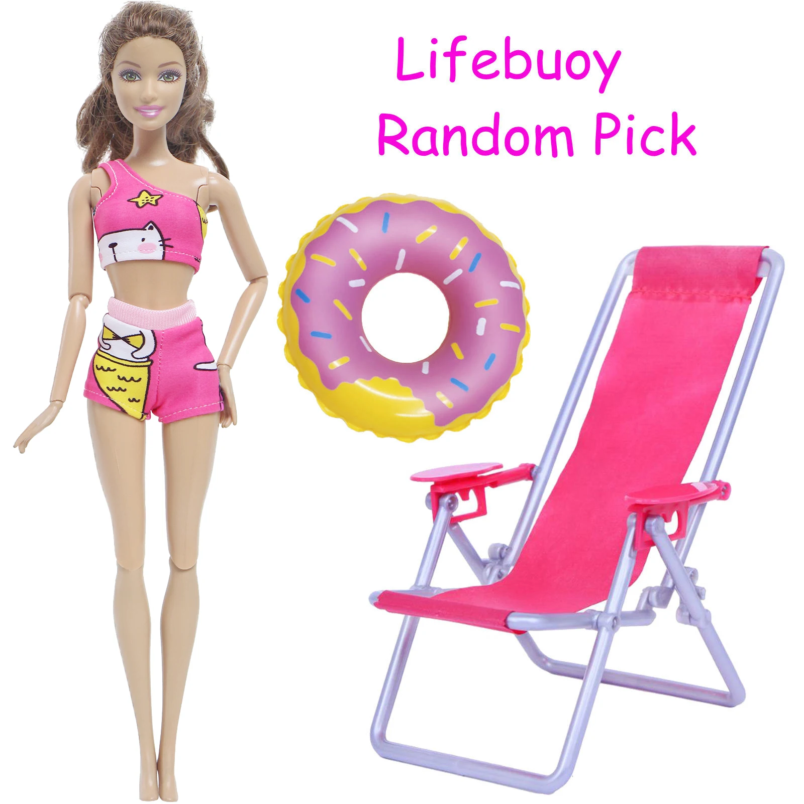 3 шт.компл. = 1 Модный купальник, бикини, купальник + случайный купальник, спасательный круг + 1 складной пляжный стул, аксессуары для куклы Барби