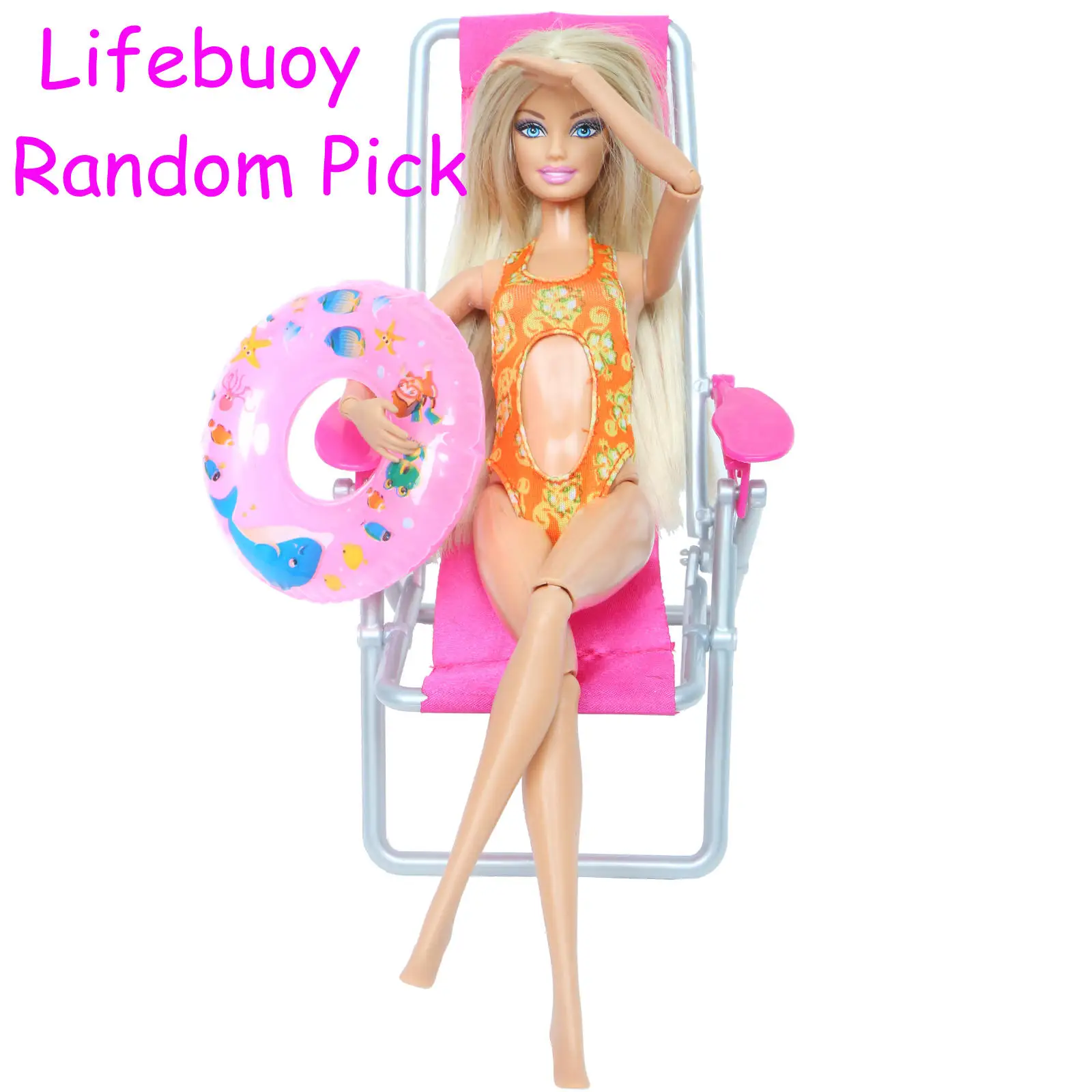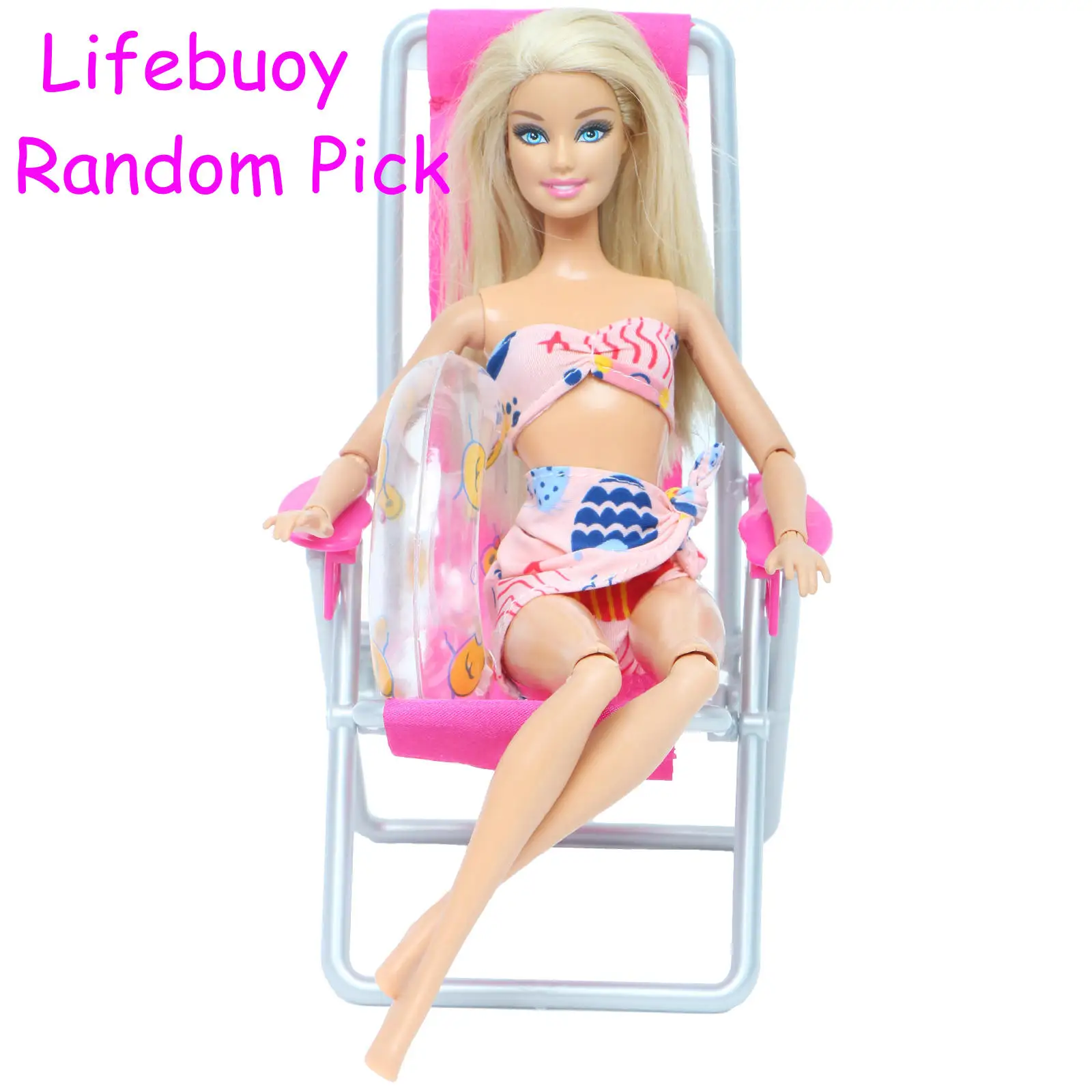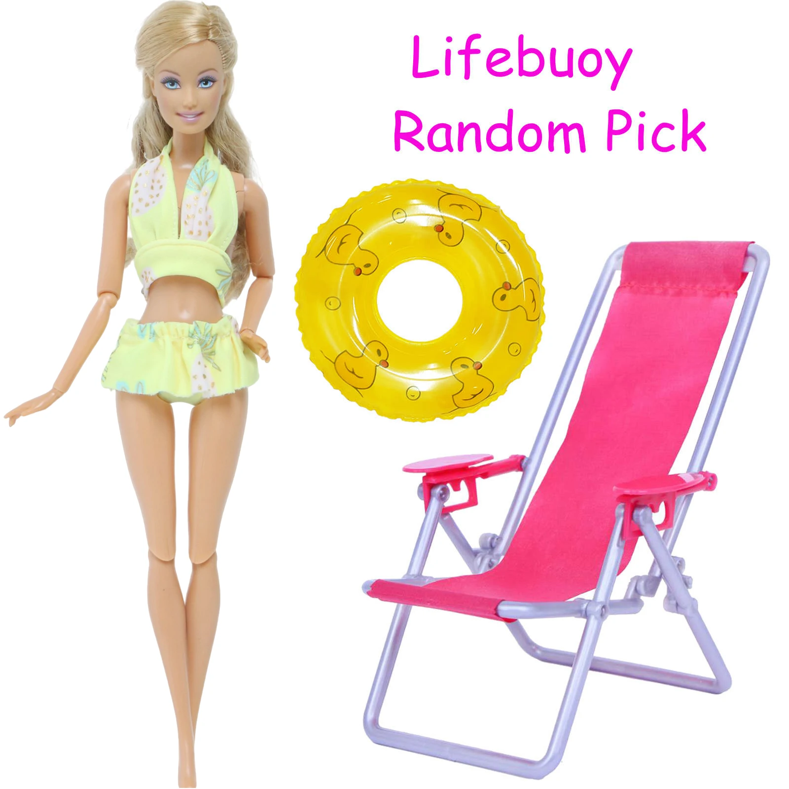 3 шт.компл. = 1 Модный купальник, бикини, купальник + случайный купальник, спасательный круг + 1 складной пляжный стул, аксессуары для куклы Барби