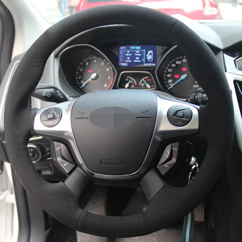 Мягкая черная замша DIY ручной работы чехол рулевого колеса автомобиля для Ford Focus 3 2012-2014 KUGA Escape 2013-2016 C-MAX 2011-2018