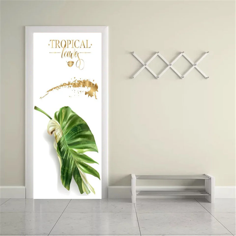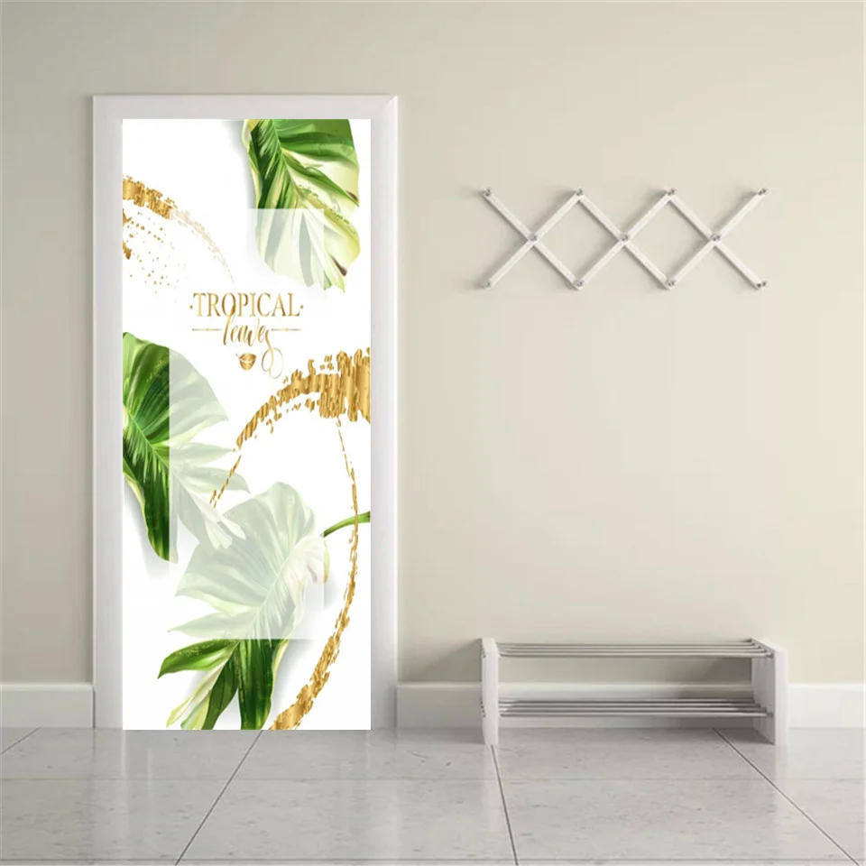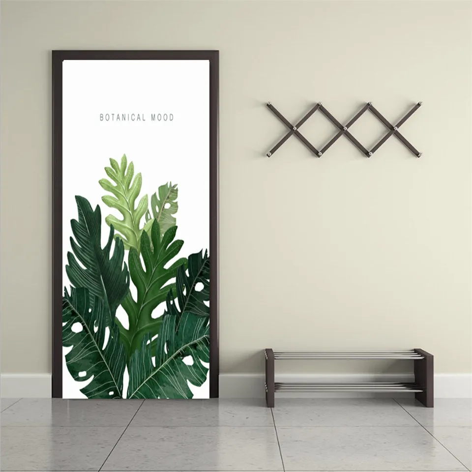 2 шт.компл. зеленые листья обои дверь наклейка для спальни клейкие Съемные Виниловые обои настенные наклейки для декора дома