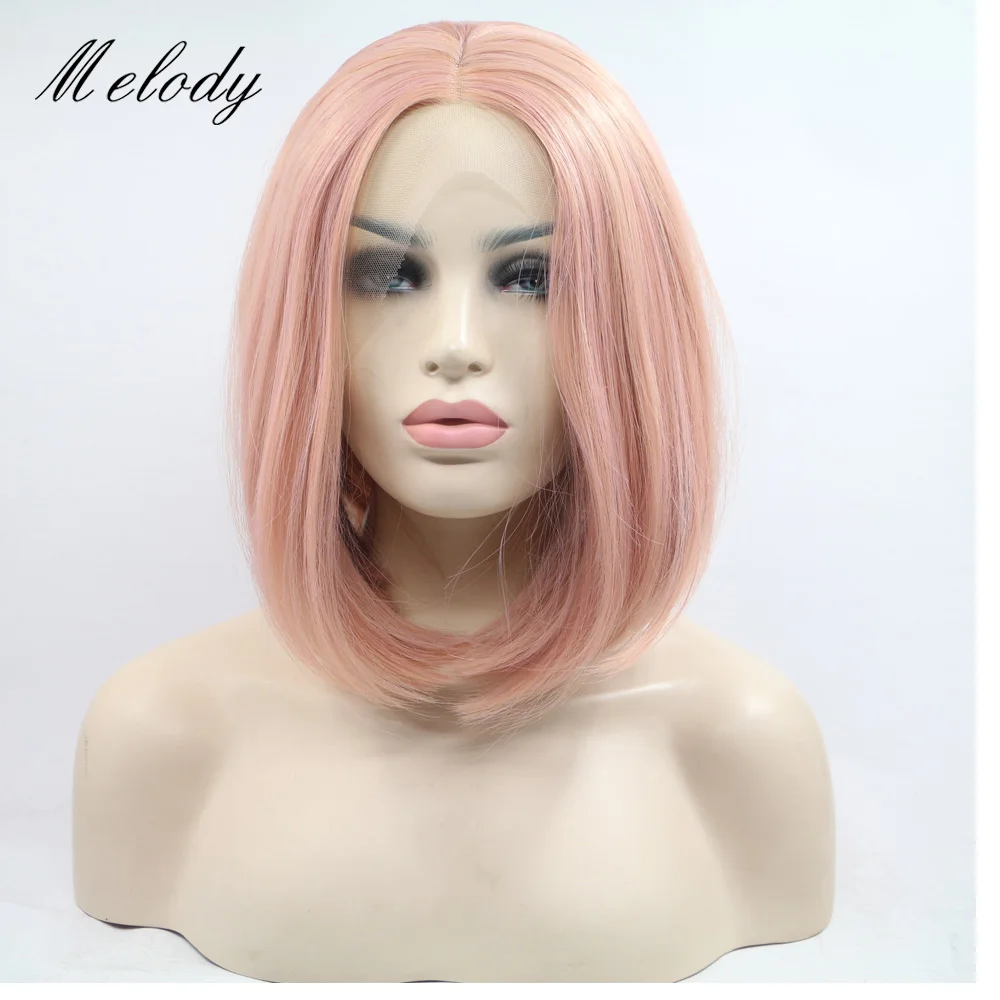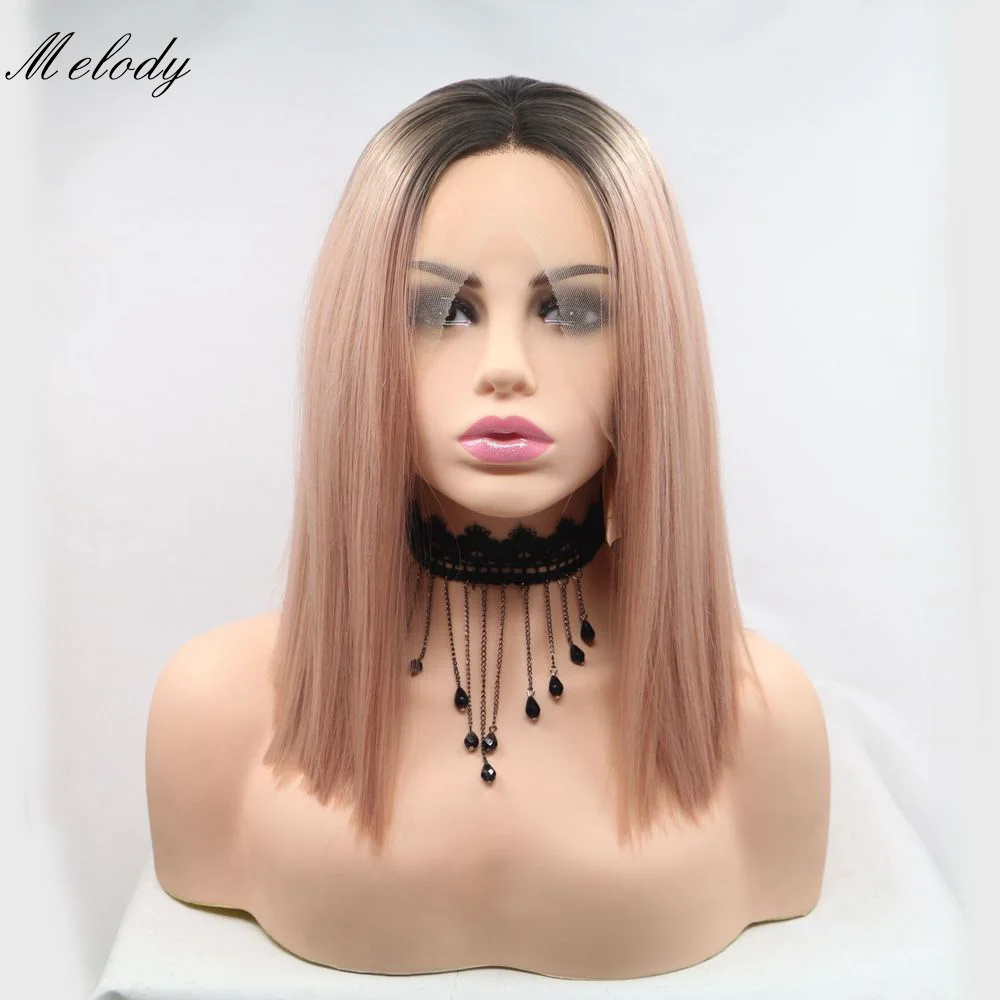 Парик для косплея Лолиты с прямыми синтетическими кружевами спереди, с эффектом омбре, блонд, без клея, цветные розовые волосы для чернокожих женщин
