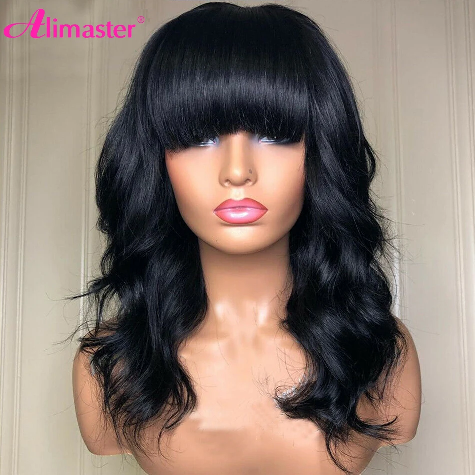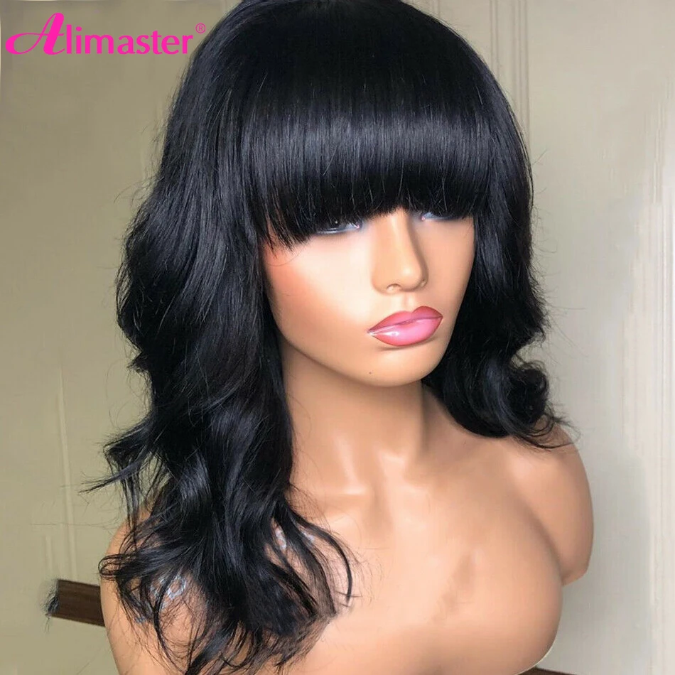 Короткий парик с челкой, бразильские волосы, парики для женщин, человеческие волосы, бесклеевые, полная машина, дешевые человеческие волосы, парики