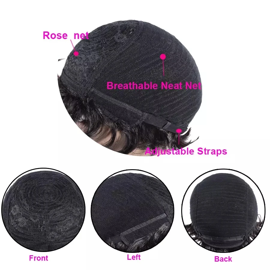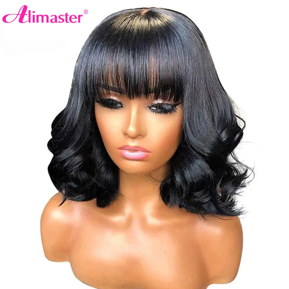 Короткий парик Боб с челкой, человеческие волосы с волнистыми волосами, парик без гульки с эластичной резинкой, парики из человеческих волос Боб для чернокожих женщин