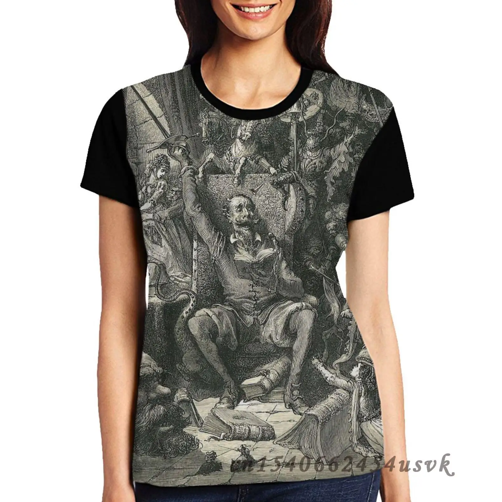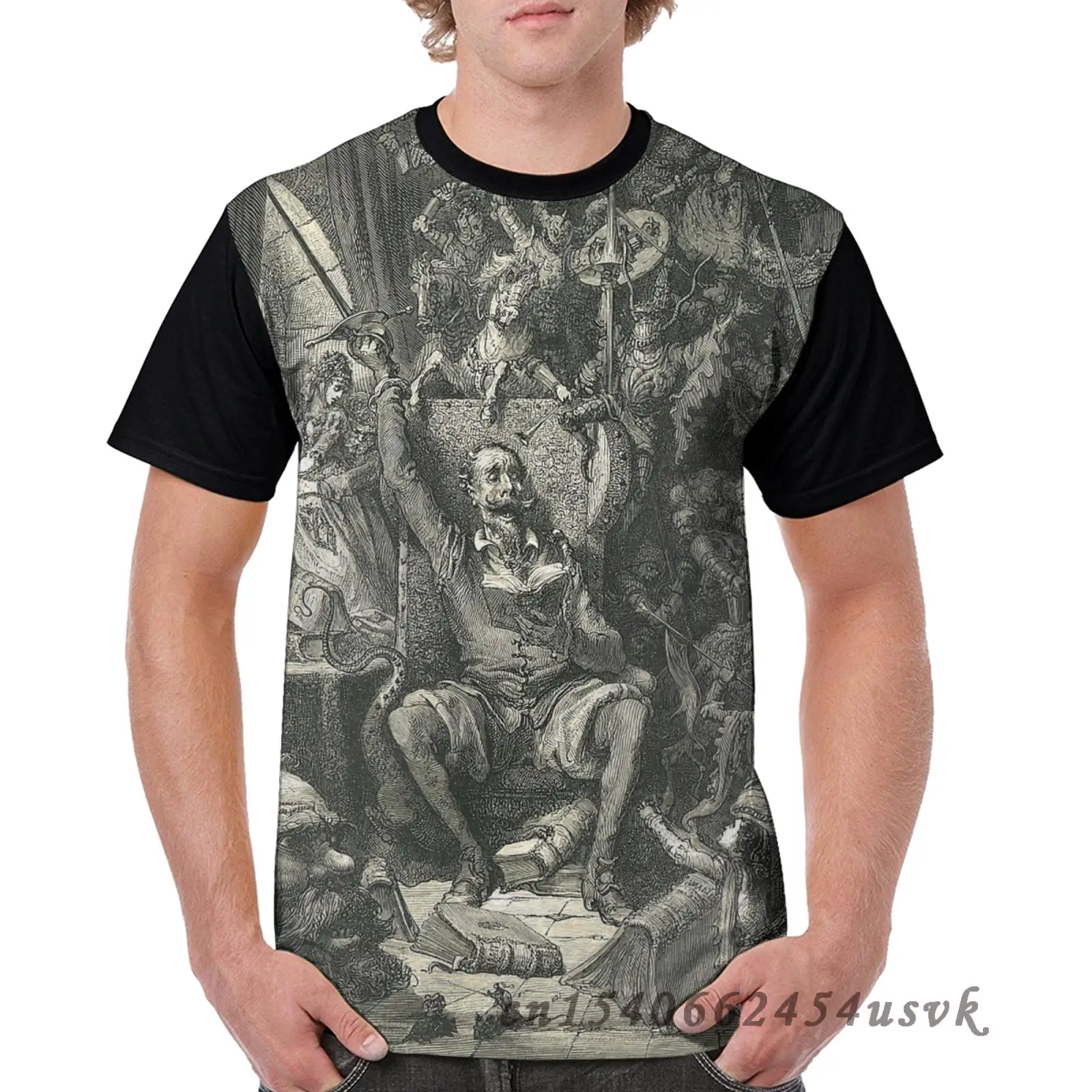 Футболка докиксот в его обучении Густава Дора, Мужская забавная футболка с принтом, женские топы, футболки, детские повседневные футболки с коротким рукавом