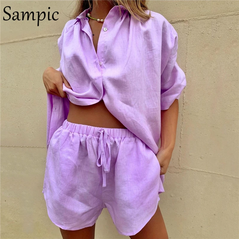 Женский спортивный костюм Sampic, комплект из двух предметов, рубашка с коротким рукавом и свободные шорты, лето 2021