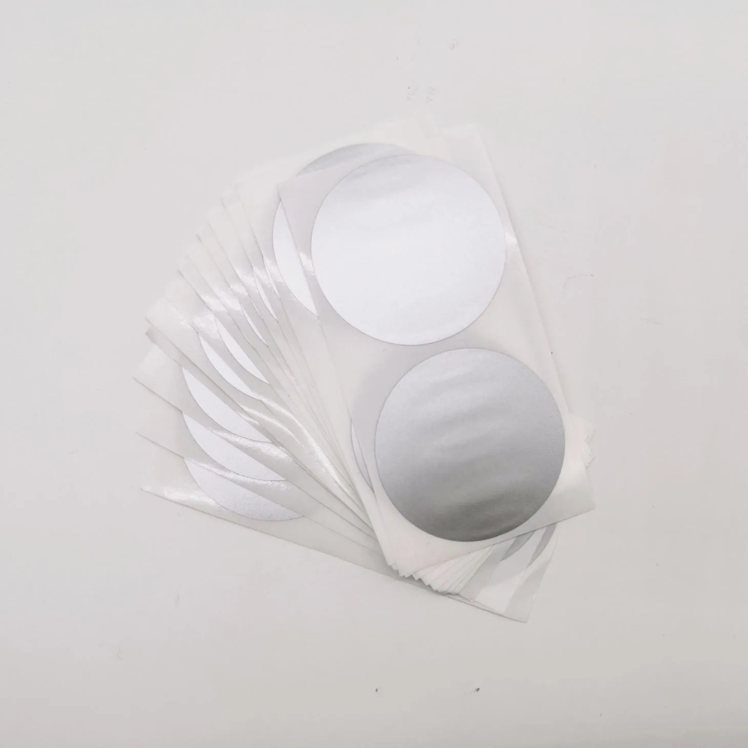 200 шт. 1,77 "дюймов Сотрите наклейки круглый магнит 45*45 мм заготовка волок для секретный код, декоративная наволочка на игра Свадебный сообщение Игральная карта Топ-ап карта с цифровым паролем Серебряный слой сверху может быть поцарапан, задняя сторона с самоклеющейся Царапины обычно используются для паролей, телефонных карт, карты пополнения, игровых карт, царапин и так далее. Любой, кто должен скрыть конфиденциальный контент, может использовать его! Легко управлять и царапать.