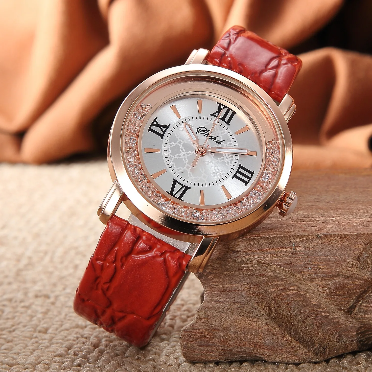 Женские модные часы Новые белые стразы с кожаным ремешком аналоговы...