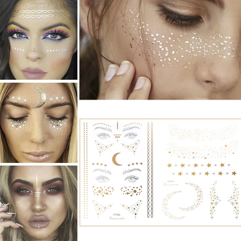 Золотистая татуировка на лицо, флэш-тату, модная Водонепроницаемая ...