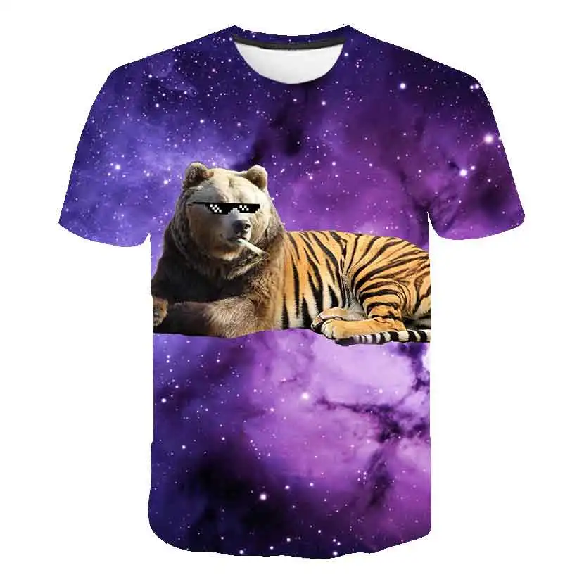 Футболка с тигром и 3D принтом, Детская летняя модная футболка с коротким рукавом для мальчиков и девочек, крутые топы, футболки, детская одежда для мальчиков и девочек