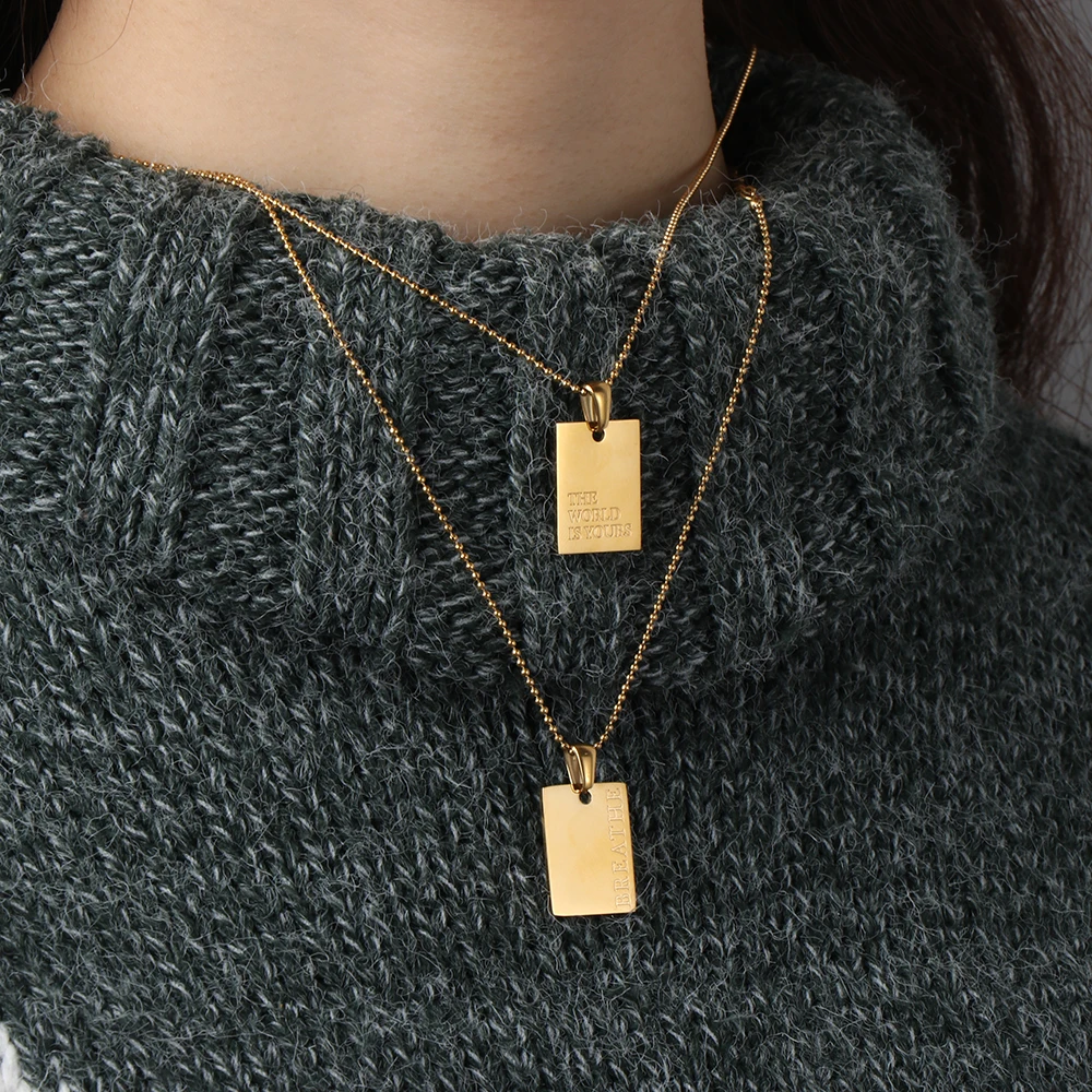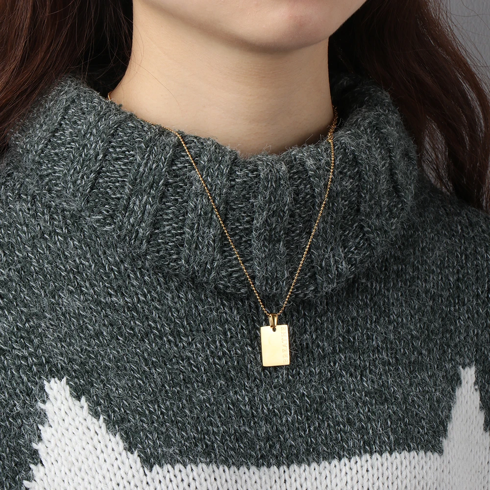 2021 Стильное ожерелье с квадратным кулоном в стиле хип-хоп ожерелье из нержавеющей стали с гравировкой букв индивидуальный стиль ювелирные изделия для вечерние Ринок аксессуары