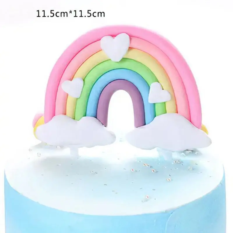 Радужный Топпер для торта С Днем Рождения декор на день рождения Единорог торт мягкий помпон облако капкейк топперы флаги Свадьба Вечеринка Baby Shower