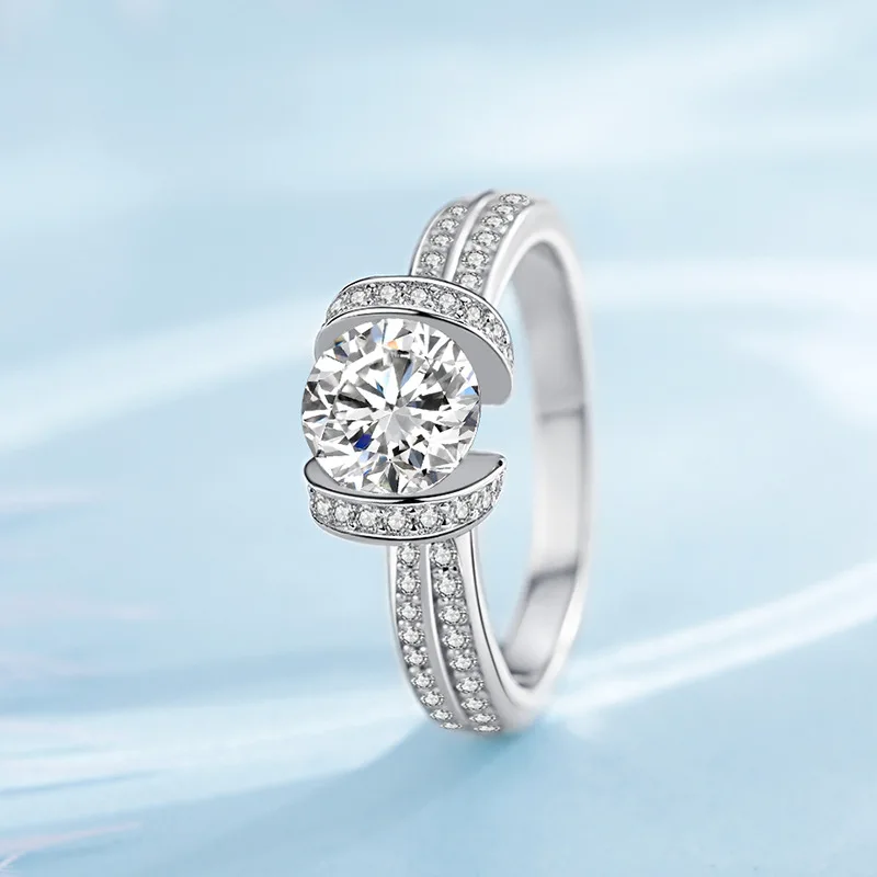 Кольцо из серебра 100% пробы с муассанитом, карат, 1 карат, 2 карат...