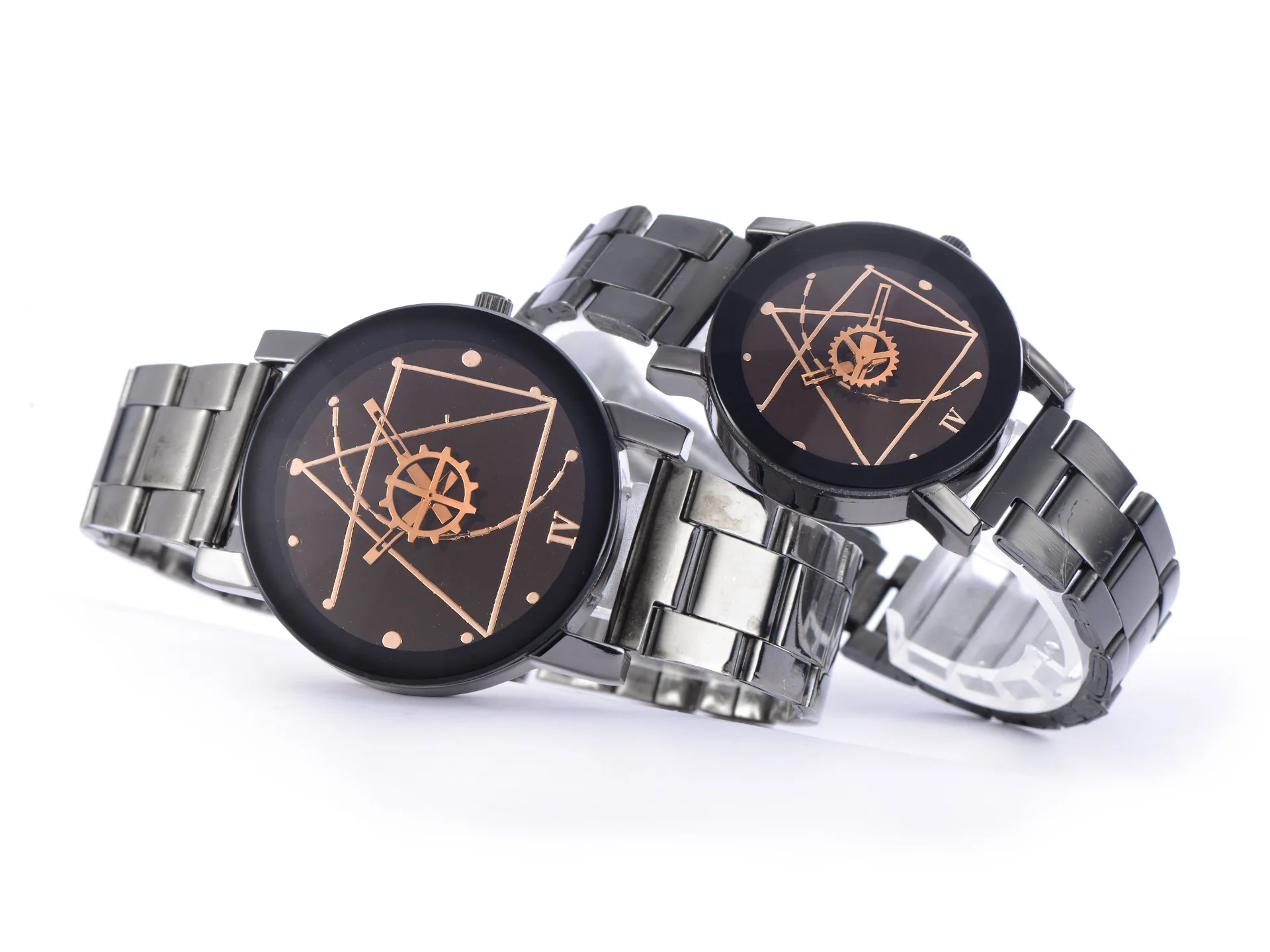 Парные часы для влюбленных, кварцевые наручные часы, модные деловые мужские часы для женщин, часы, Вольфрамовая сталь, кофе, золотые часы