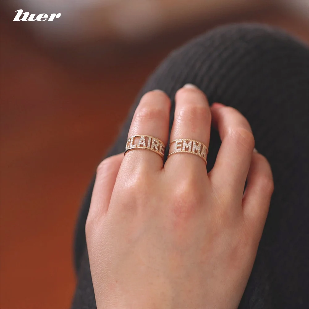 LUER кольца с именем на заказ/украшения с цирконами кольца с именной табличкой/женские кольца с буквами/полностью циркониевый микро-браслет ручной работы подарок