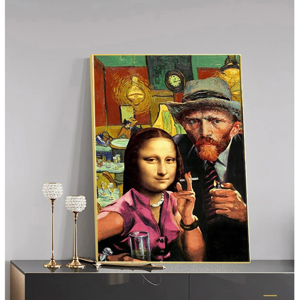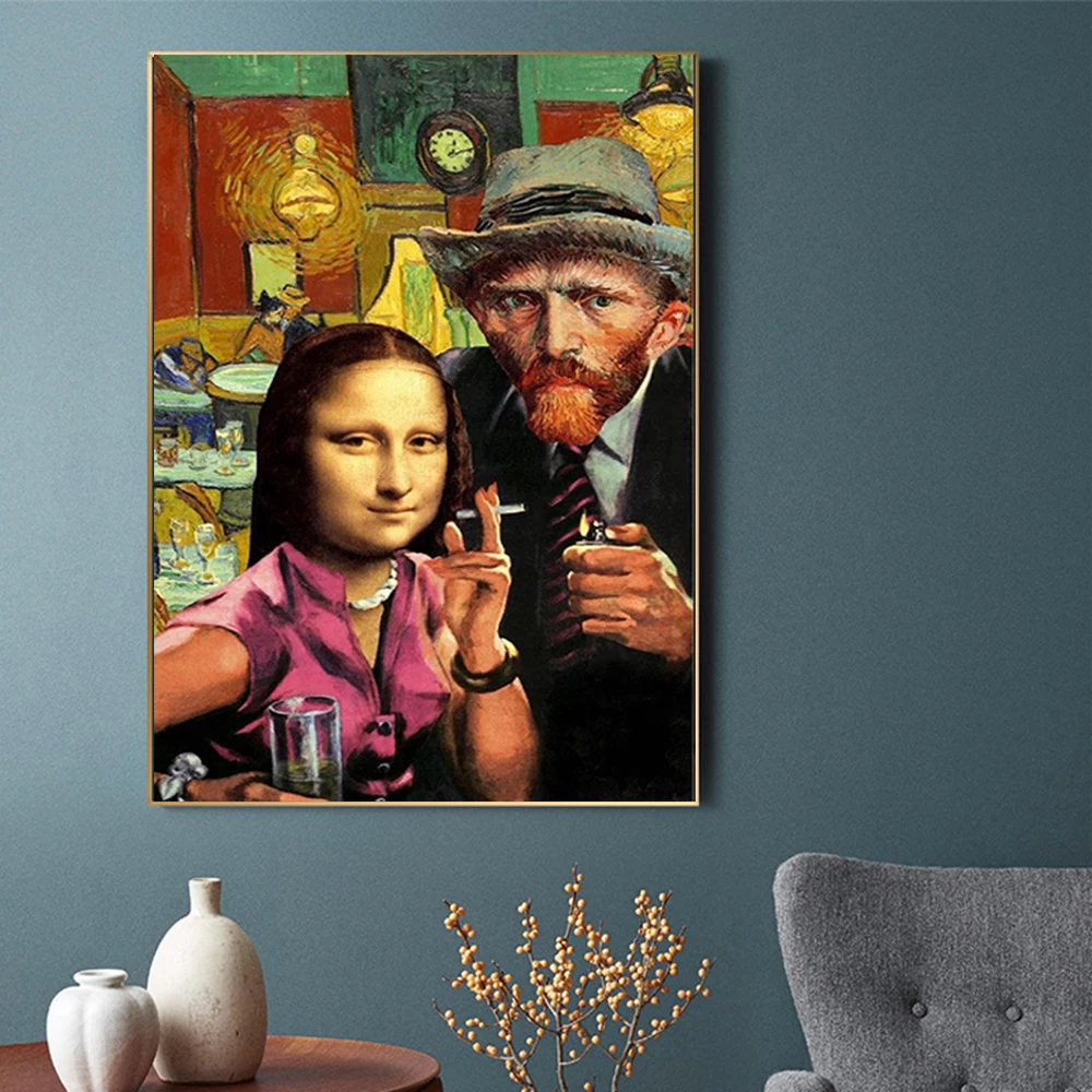 Забавный арт Мона Лиза и Ван Гога для холст Картины настенные художественные плакаты и принты да Винчи знаменитый Картины украшение дома