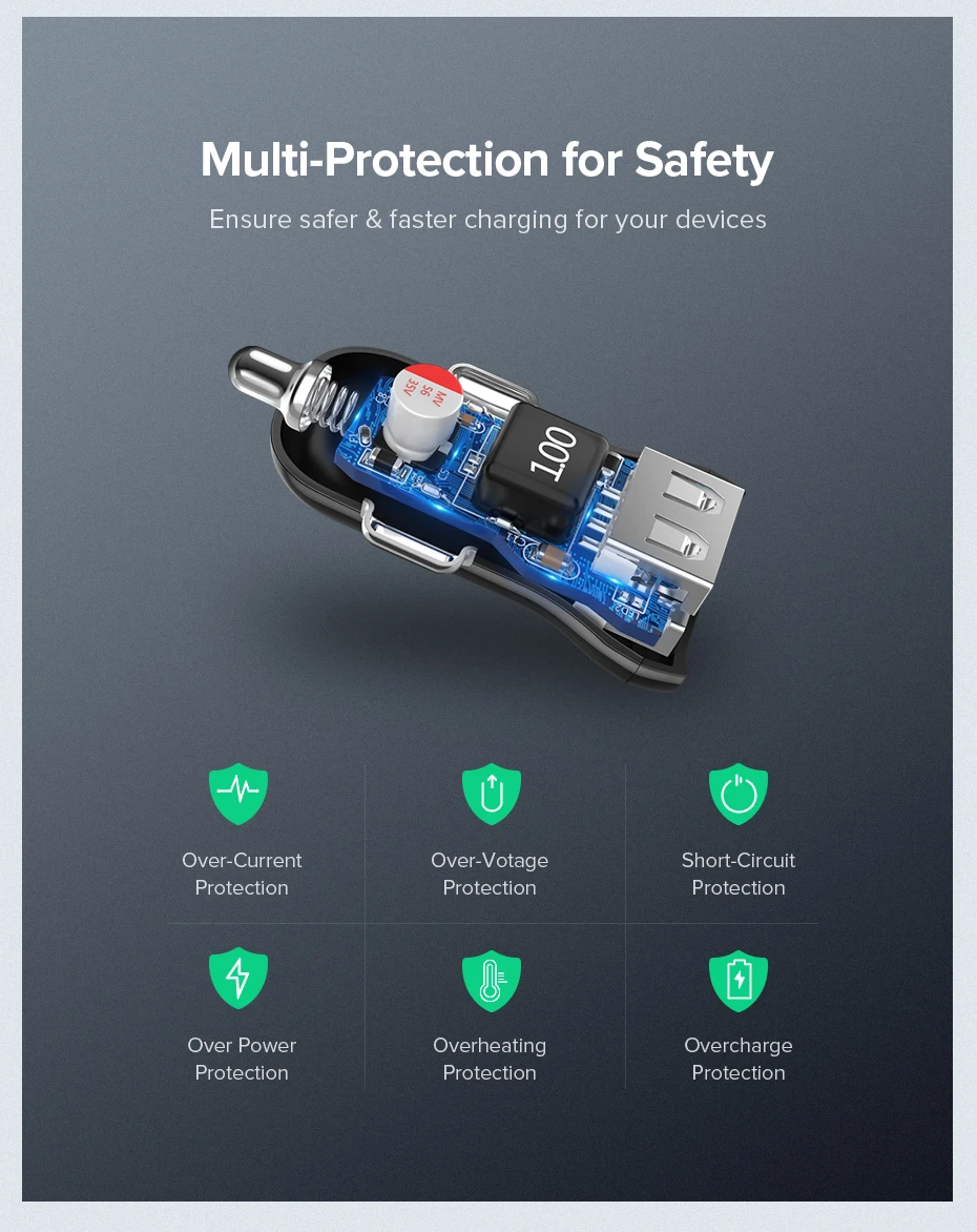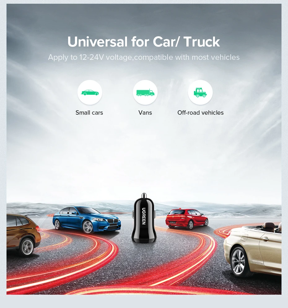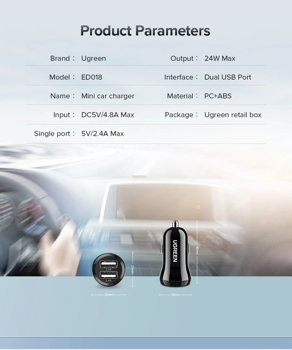 Автомобильное зарядное устройство UGREEN, 5 В, мобильный телефон А, миниатюрное зарядное устройство для автомобиля, двойное зарядное устройство Автомобильное usb-устройство для зарядки телефона, адаптер для автомобиля