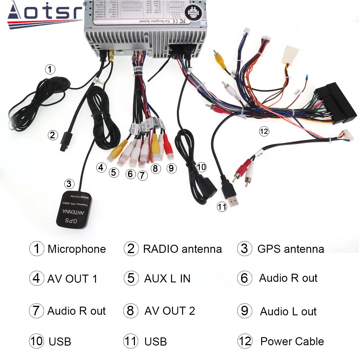 Наш продукт поставляется с GPS антенной, gps-картой для вашей страны, usb-адаптером, аудио и видео входным кабелем, кабелем питания... и т. д., все наборы для установки будут в посылка.