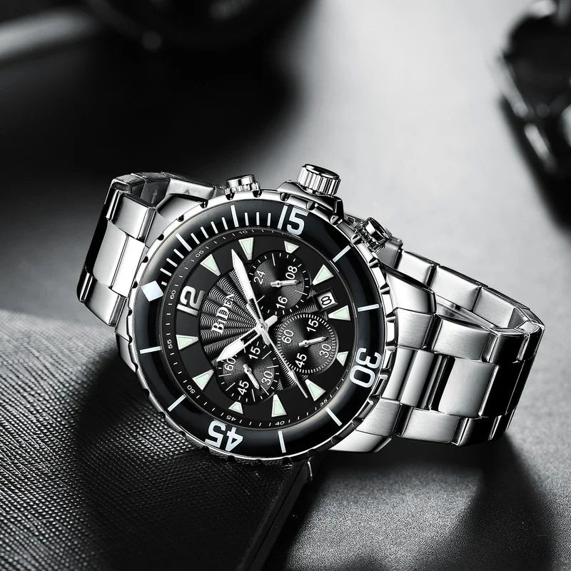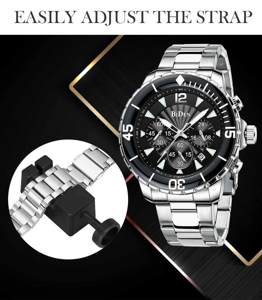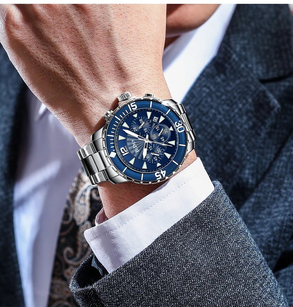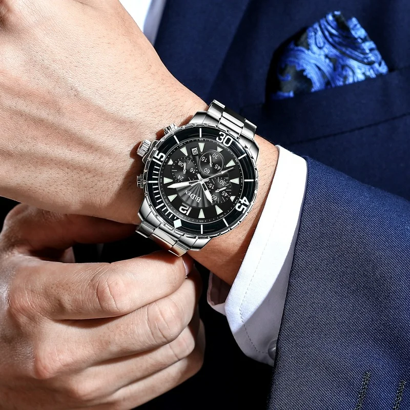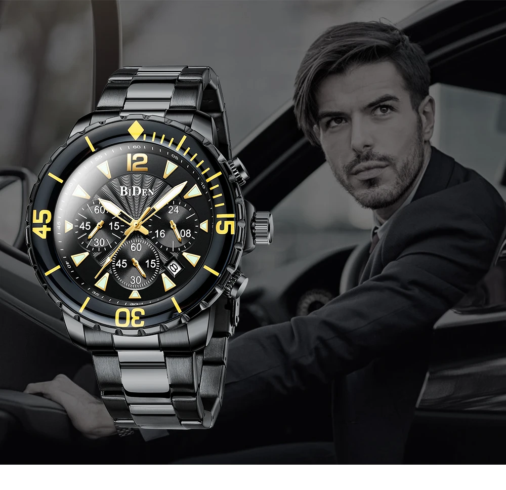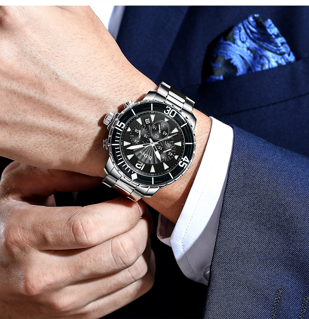 Часы наручные BiDen Мужские кварцевые с автоматическим хронографом, брендовые Роскошные модные спортивные водонепроницаемые до 30 м, подарок, 2021