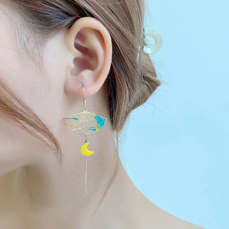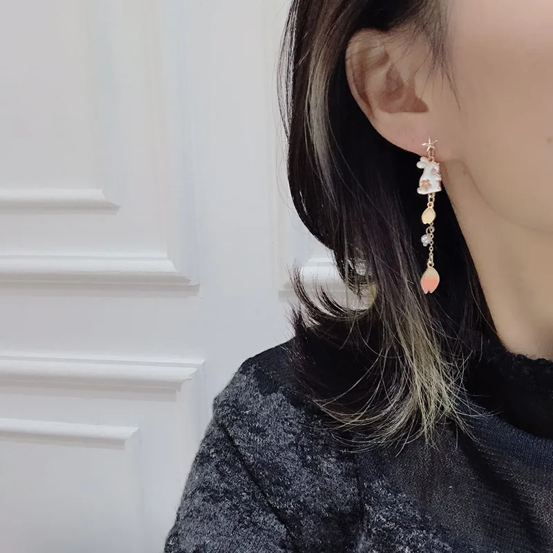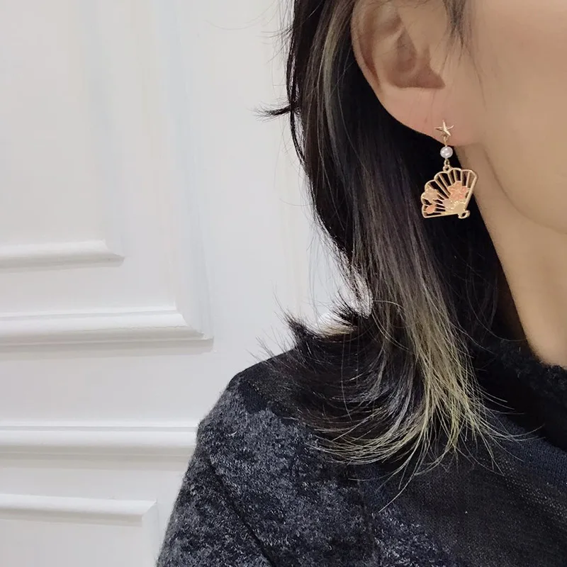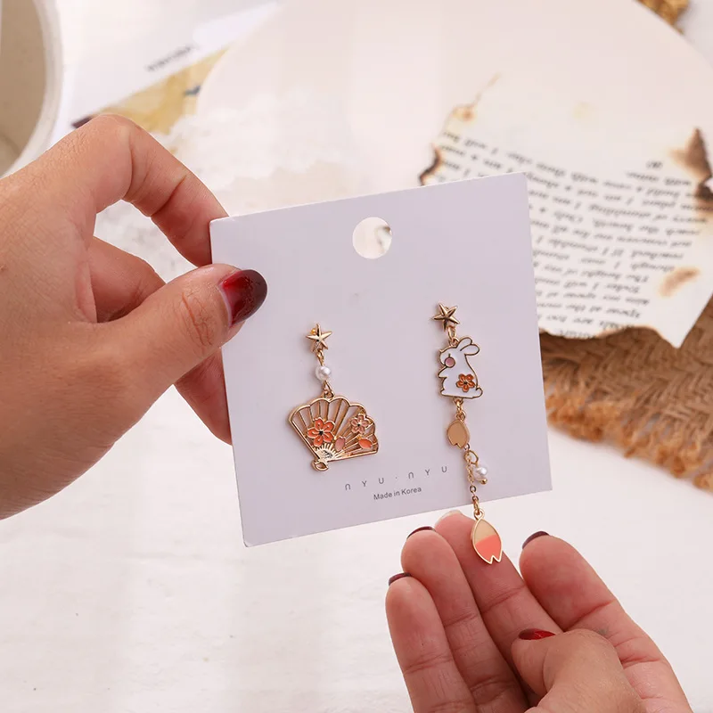 Новый китайский Стиль металлические полые вентилятор кран серьги-подвески для женщин популярные элементы асимметричное платье с изображениями кролика Банни, котёнка, очарование уха ювелирных изделий