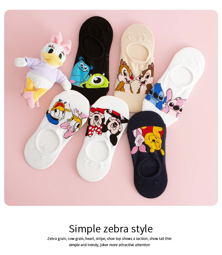 Женские короткие носки 10 цветов с мультяшным рисунком Диснея, хлоп...
