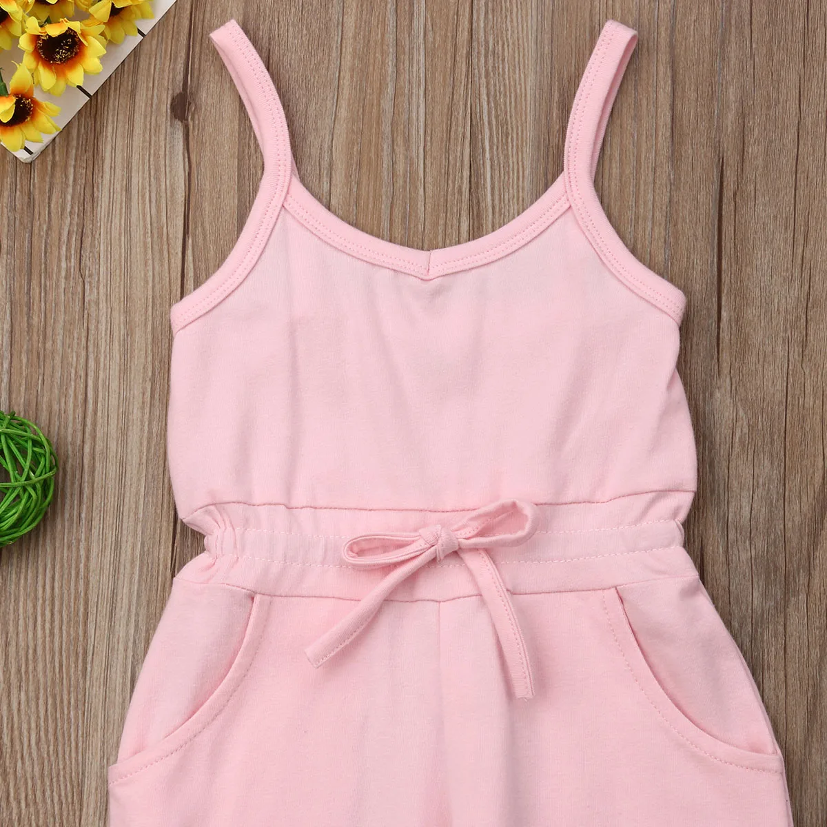 Оптовая продажа; Сезон лето; В виде комбинезона для детей; Одежда для маленьких девочек; Однотонная Цвет ремень комбинезон комбинезоны без рукавов; Модная одежда на каждый день